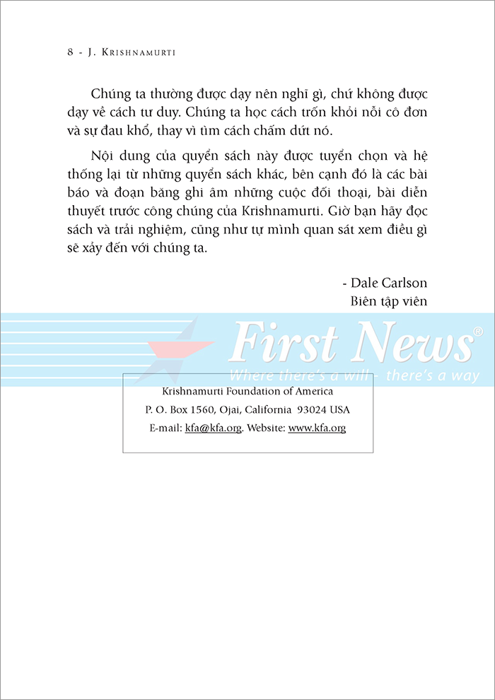 Jiddu Krishnamurti (1895 – 1986) là một triết gia và nhà diễn thuyết nổi tiếng về các vấn đề triết học và tinh thần, các chủ đề bao gồm: mục đích của thiền định, mối quan hệ giữa con người và phương cách để tạo nên sự thay đổi tích cực cho xã hội.