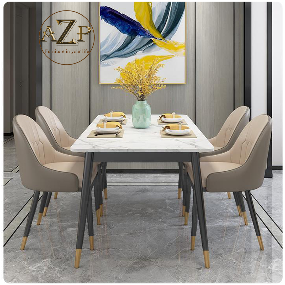 Bàn & Ghế Ăn Mặt Đá Chân Thép Phong Cách Đương Đại Xu Hướng Hiện Nay / Kích Thước 1.2m - 1.4m - 1.6m & 1.8m