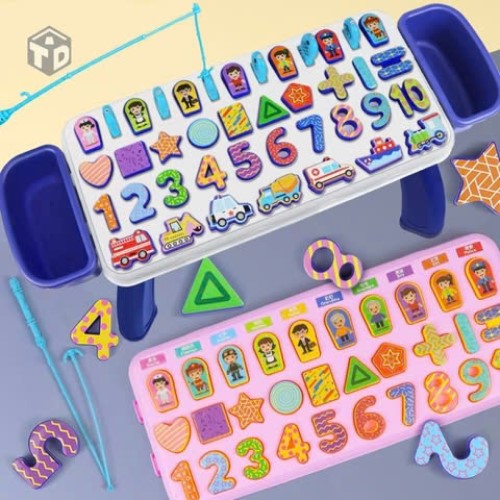 ✨Bàn học chữ số thông minh 5 trong1 có câu cá nam châm 40 chi tiết: câu cá và ghép số, nhân vật, phương tiện giao thông, hình khối học đếm - HENRYSA