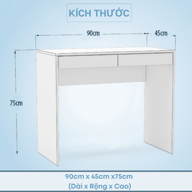 ✨Bàn Làm Việc Màu Trắng Nhỏ Xinh Kèm 2 Ngăn Kéo Màu Trắng SIB Decor BLV45