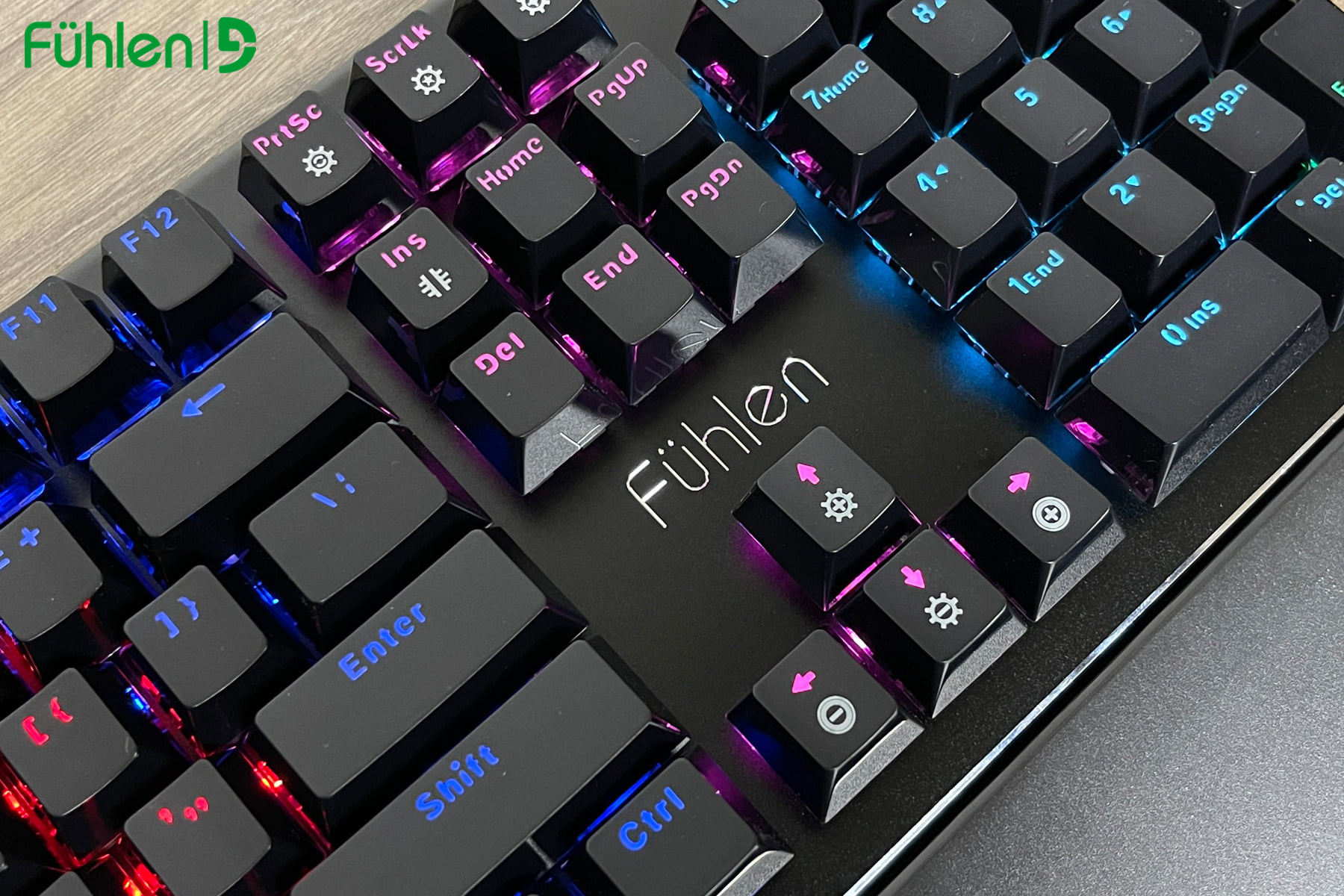 - 10 chế độ LED trên các phím, cùng 3 chế độ sáng của logo Fuhlen ở 2 bên