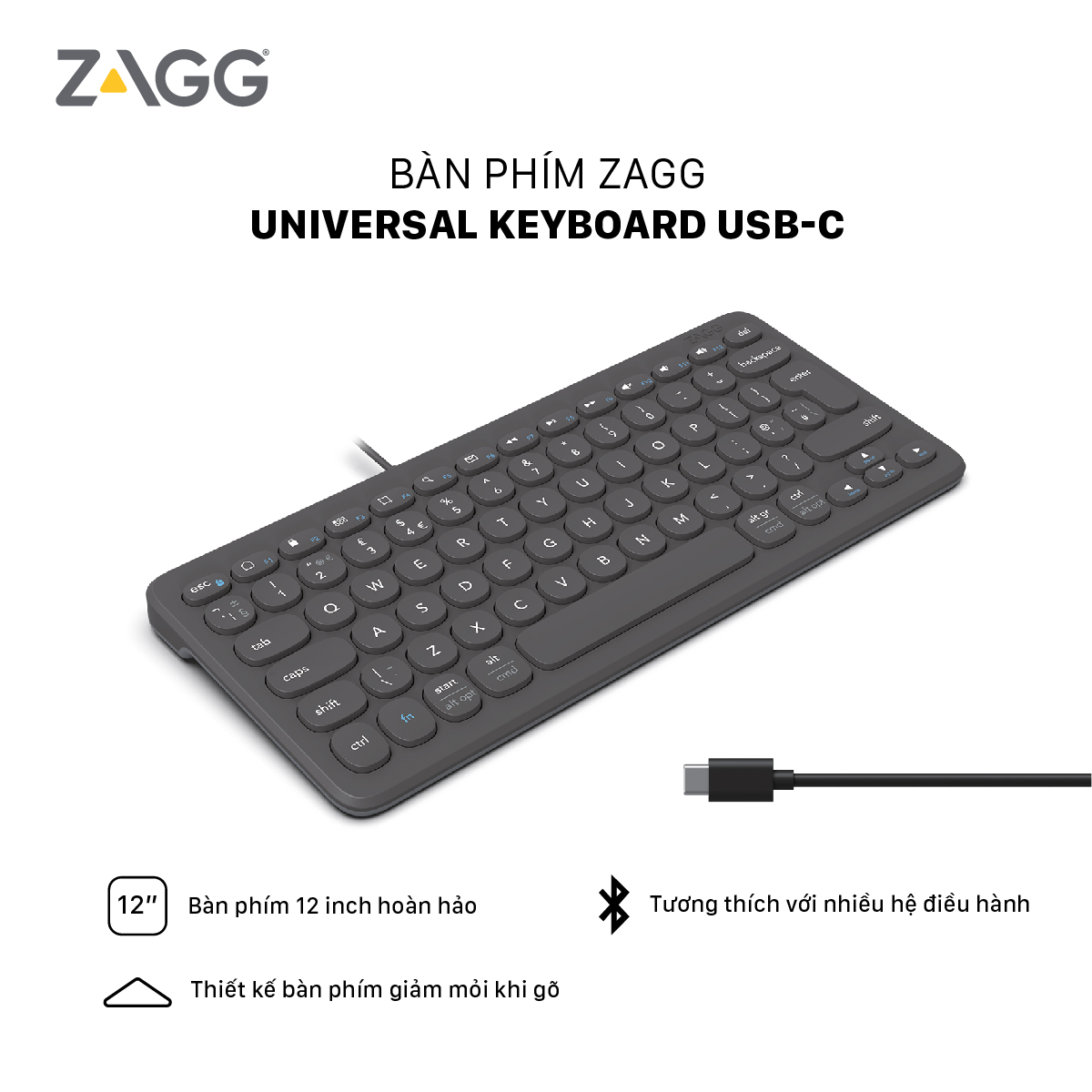 ZAGG Universal Keyboard Type C - Bàn phím 12 inch có dây dài giúp di chuyển linh hoạt, phù hợp với các môi trường làm việc khác nhau là lựa chọn hữu ích mang đến sự tiện lợi, tối ưu cho cuộc sống của bạn!