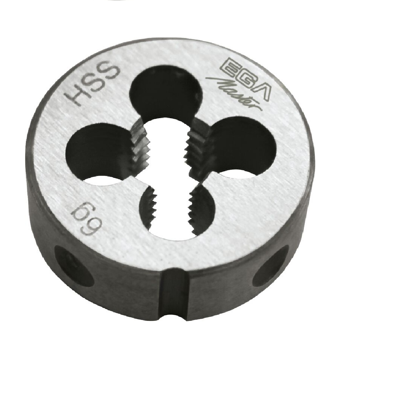 Bàn ren hệ inch UNC 1/4" x 20 Ega Master 57928 Đường kính khoan ren: 1/4" Kiểu ren: hệ inch Độ dày bàn ren: 07 mm Đường kính ngoài bàn ren: 20 mm Vật liệu