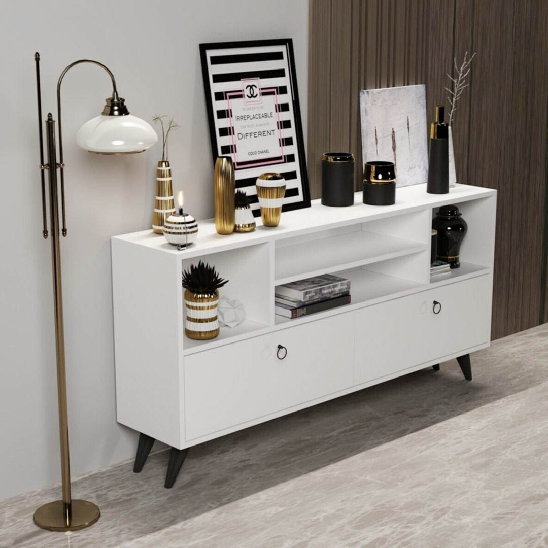 kích thước Rộng 160cm, cao 74cm, sâu 20cm chất liệu Gỗ MDF / Độ Dày 17mm mô hình Tháo Lắp Ráp trọng lượng 30kg màu sắc Trắng - Đen - Vân Sồi ####