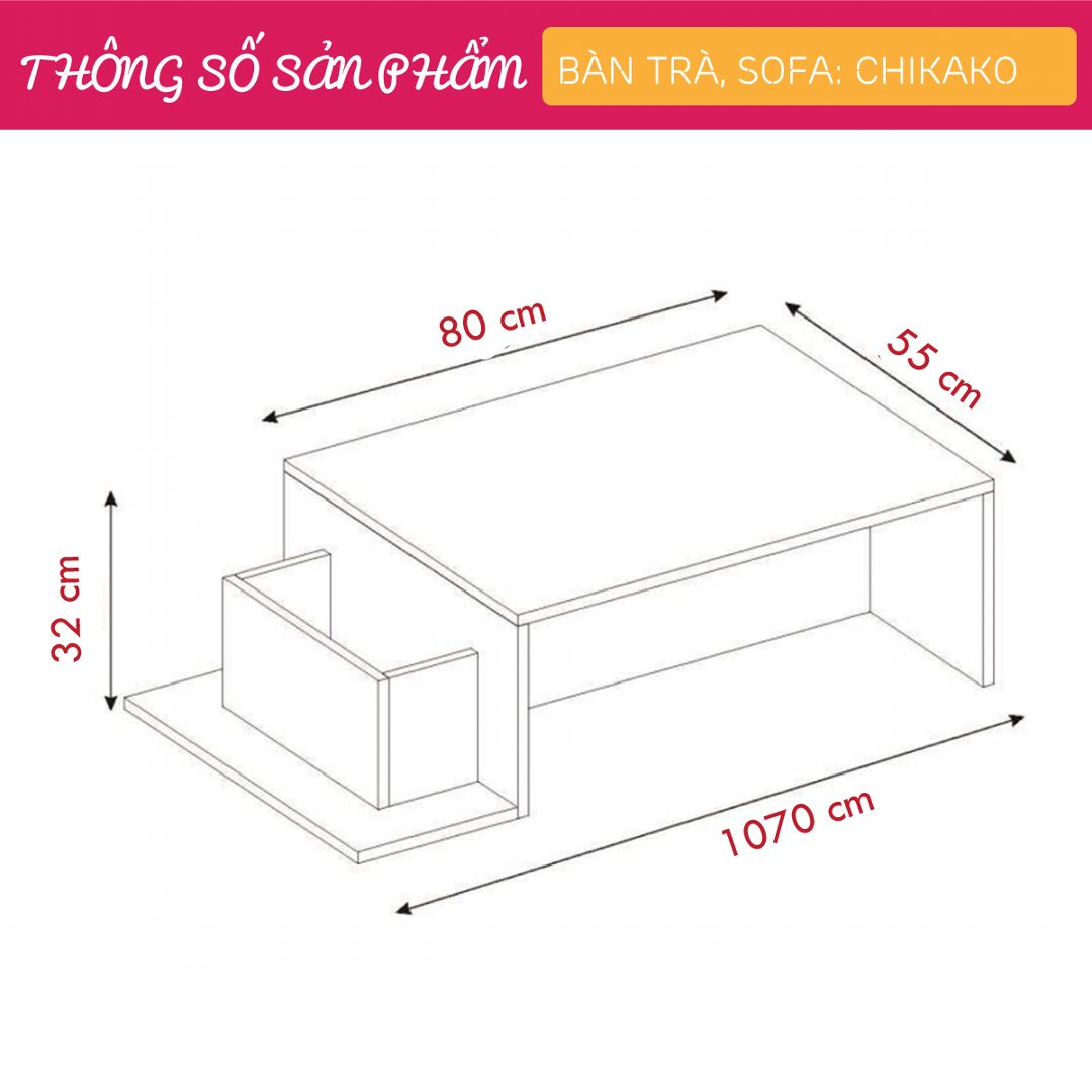 - Kích thước: Dài 107cm x Rộng 55cm x Cao 32cm
