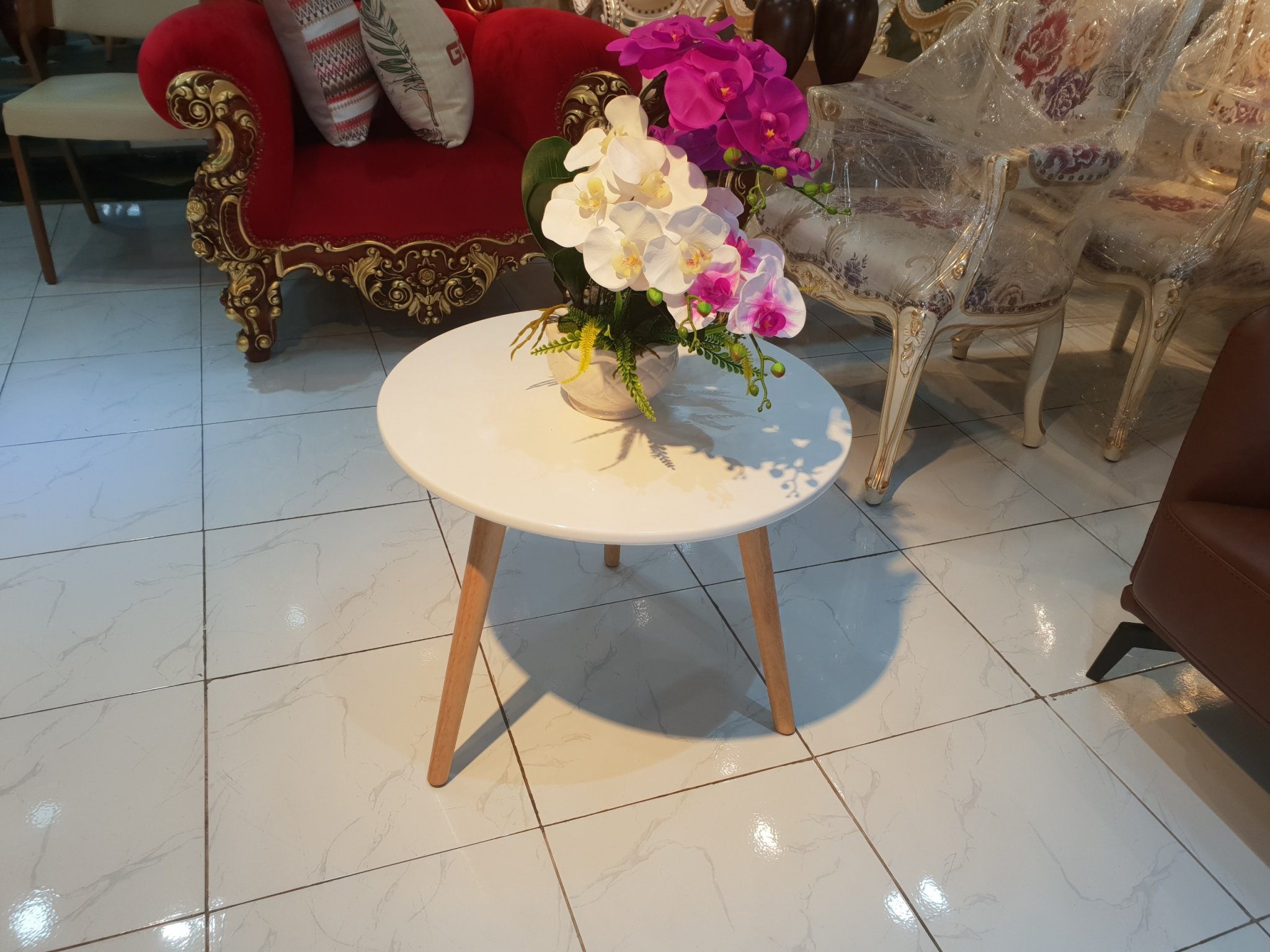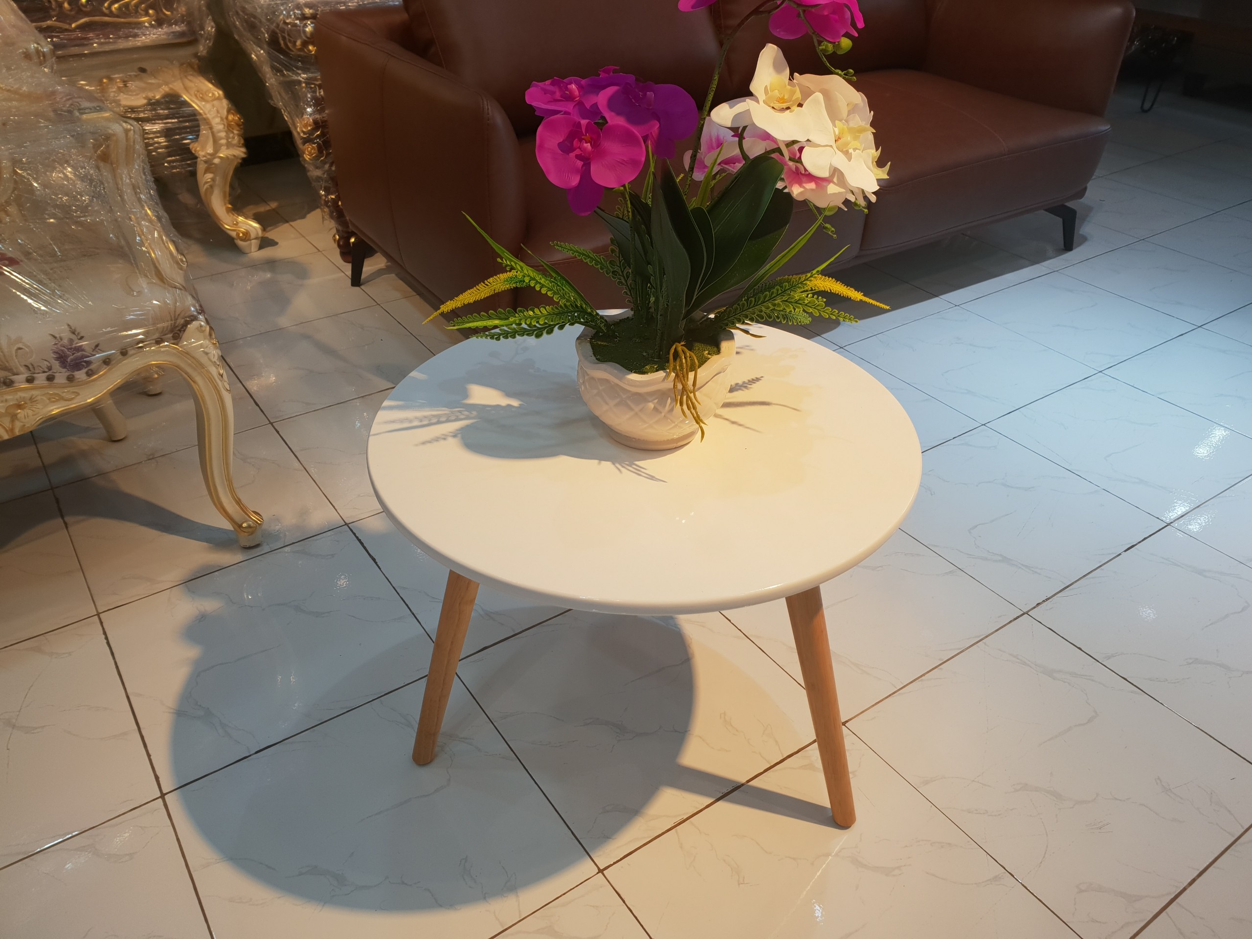 ✨Bàn sofa tròn trắng - Đường kính 60cm - Chân gỗ tự nhiên