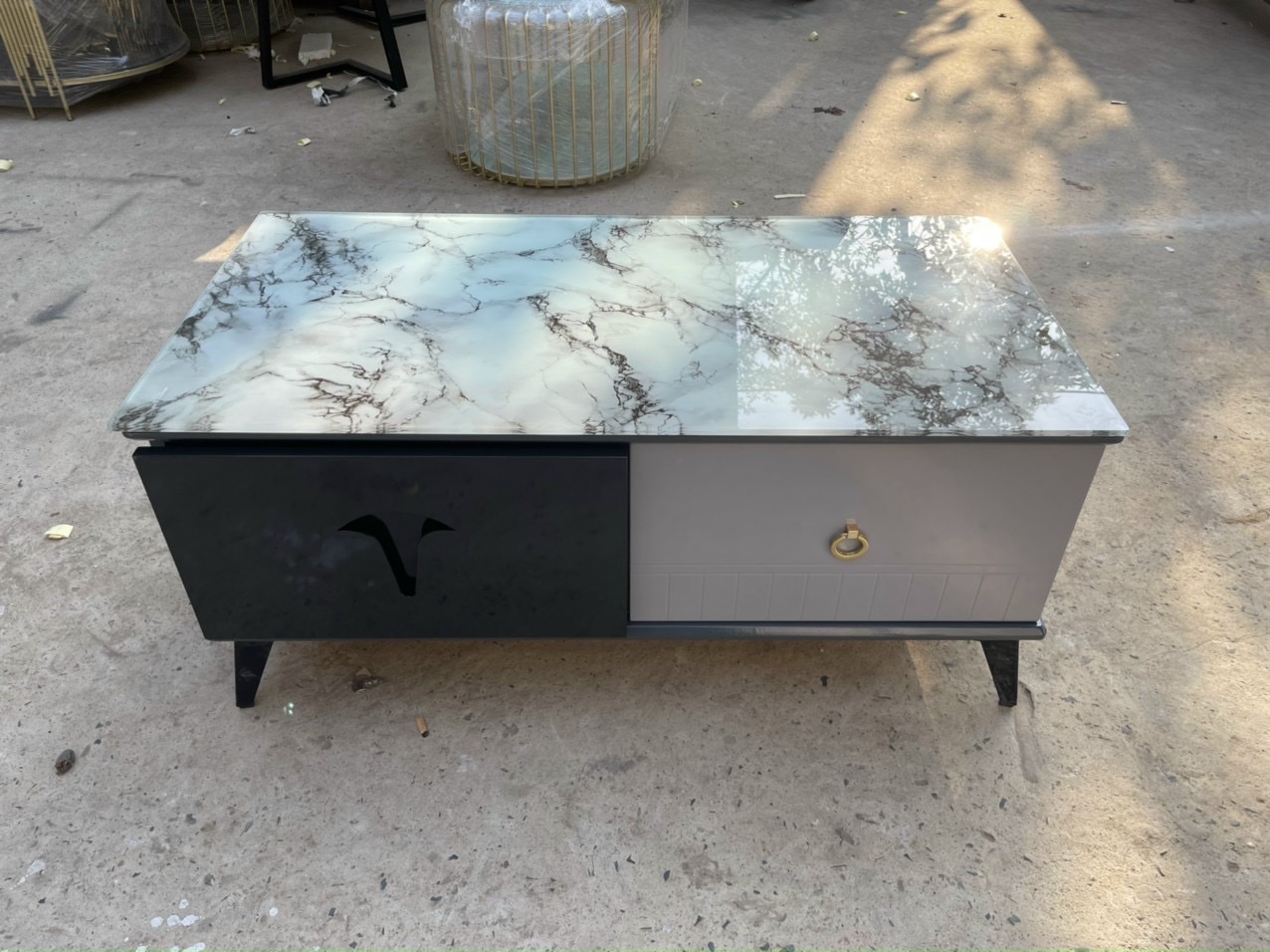 ✨Bàn trà mặt kính Tundo mẫu mới 2023 kèm hộc kéo tiện lợi KT50x100x45cm