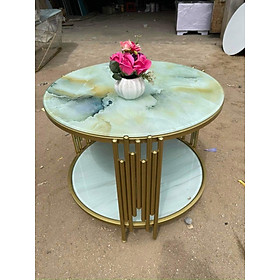 Bàn trà phòng khách sang trọng và thông minh khung bàn được cấu tạo kẽm sơn tĩnh điện hoặc ionx mạ titan màu vàng ánh kim tạo điểm nhấn độc đáo, sang trọng cho bàn.