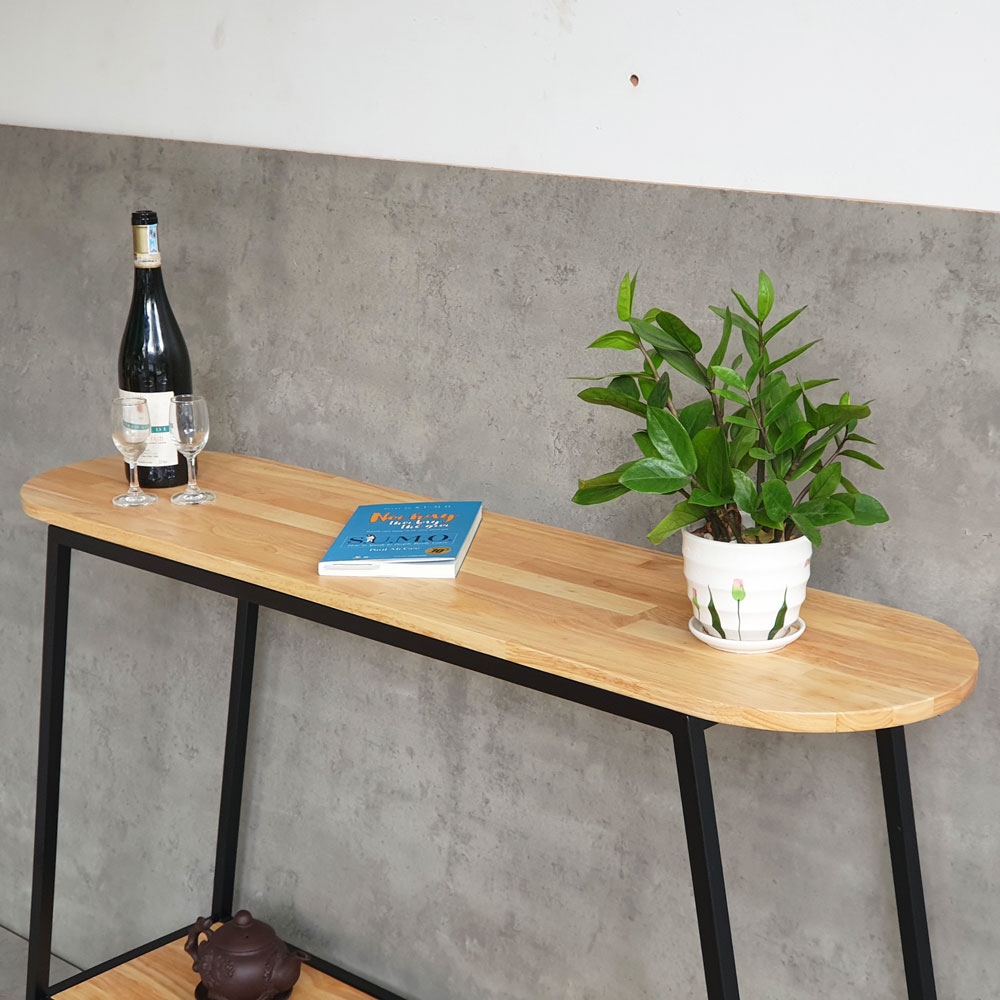 Bàn console trang trí gỗ cao su khung sắt CSTCT047 sử dụng vật liệu chính là gỗ cao su tiêu chuẩn AA dày 17mm được xử lý và hoàn thiện vân màu gỗ tự nhiên