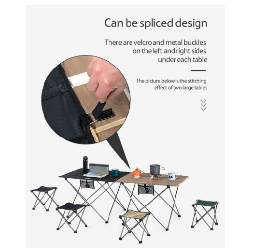 Mua tại Tiktok Thông tin chi tiết sản phẩm: – Chất liệu: Hợp kim Nhôm, Sợi Offord 1680D – Kích thước: – Bàn size S, kích thước: 43 x 42 x 38cm – Bàn size L, kích