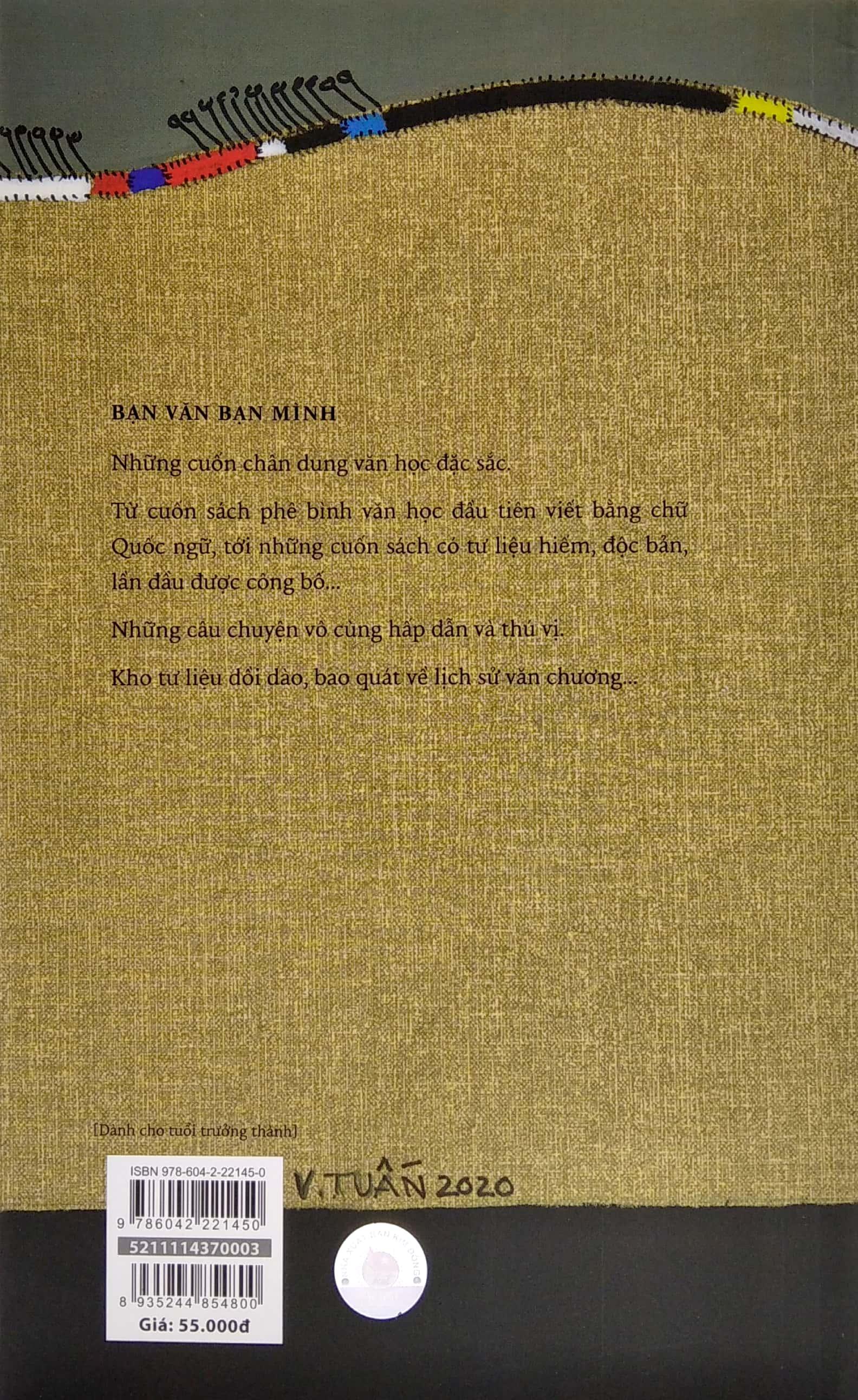 Bộ Bạn Văn Bạn Mình tuyển chọn những cuốn chân dung văn học đặc sắc. Từ cuốn sách phê bình văn học đầu tiên viết bằng chữ Quốc ngữ, tới những cuốn sách có tư liệu hiếm, độc bản, lần đầu được công bố… Những câu chuyện vô cùng hấp dẫn và thú vị. Kho tư liệu dồi dào, bao quát về lịch sử văn chương.