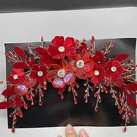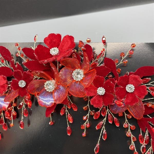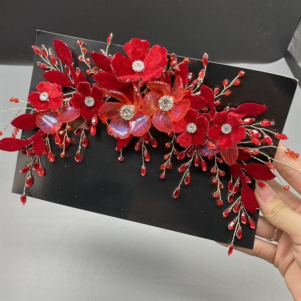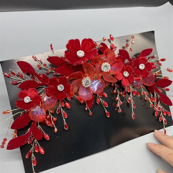 ✨Băng đô cài tóc cô dâu hoa đỏ đính đá mẫu mới t8/2024