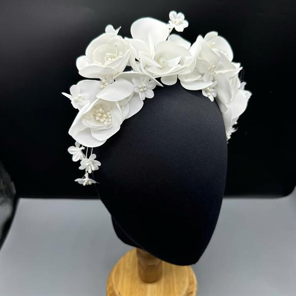 ✨Băng đô cài tóc cô dâu hoa vải trắng 3D mẫu mới t11/2024