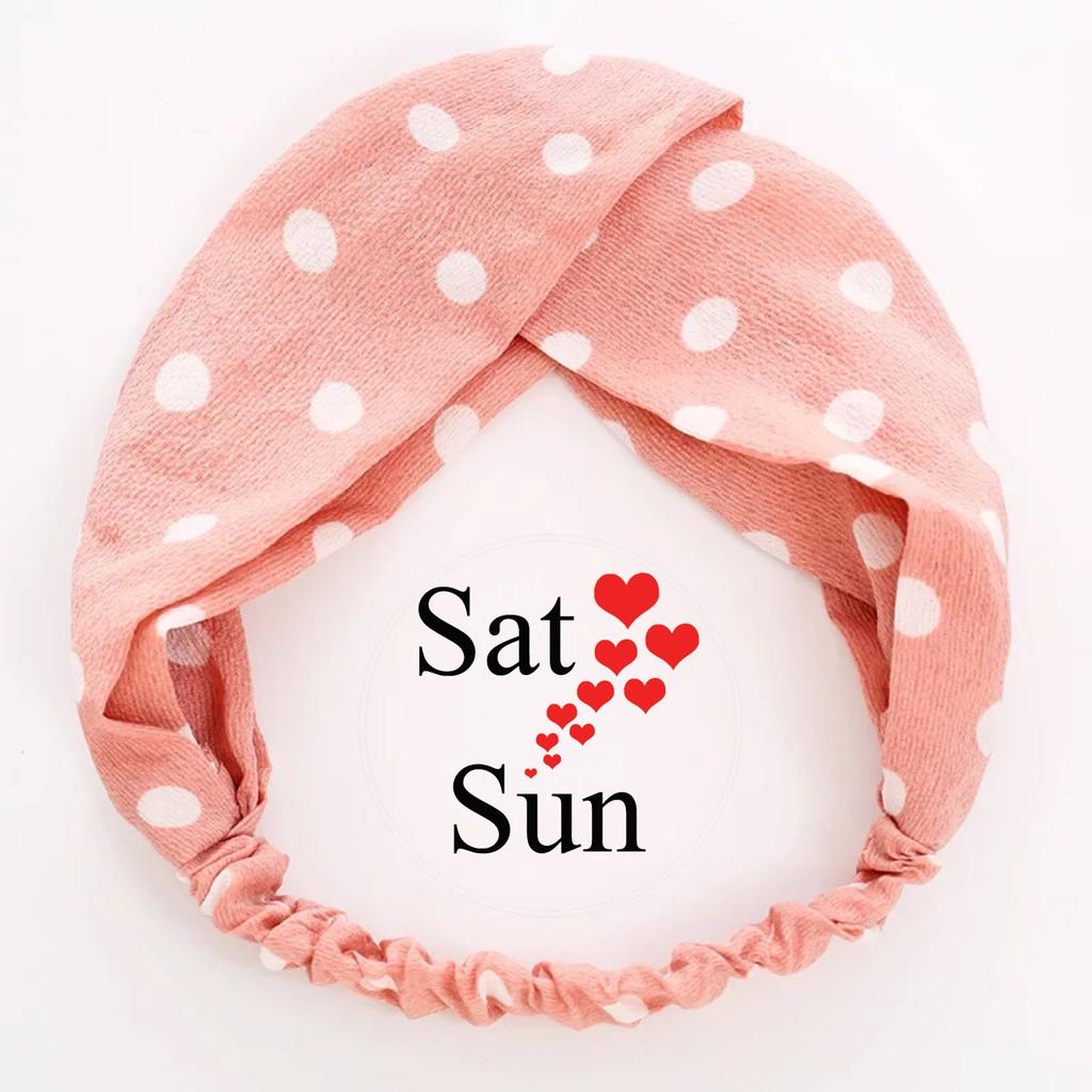 ✨Băng Đô Turban Vải Họa Tiết Chấm Bi Dùng Khi Trang Điểm Đi Chơi...