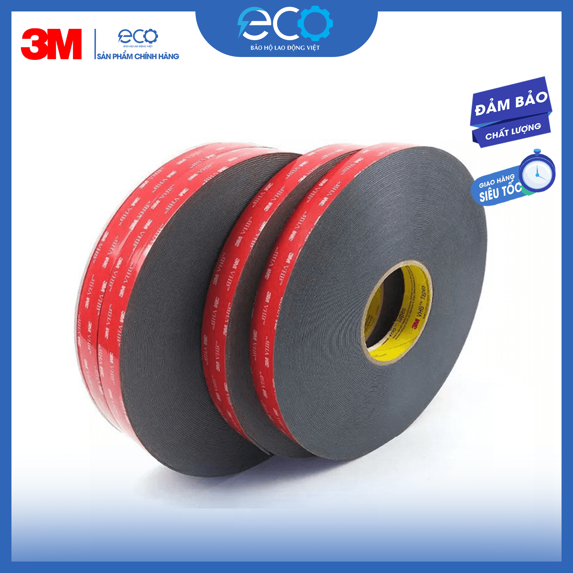 - Màu sắc: Màng keo xám đen, màng chống dính màu đỏ in chữ 3M VHB trắng