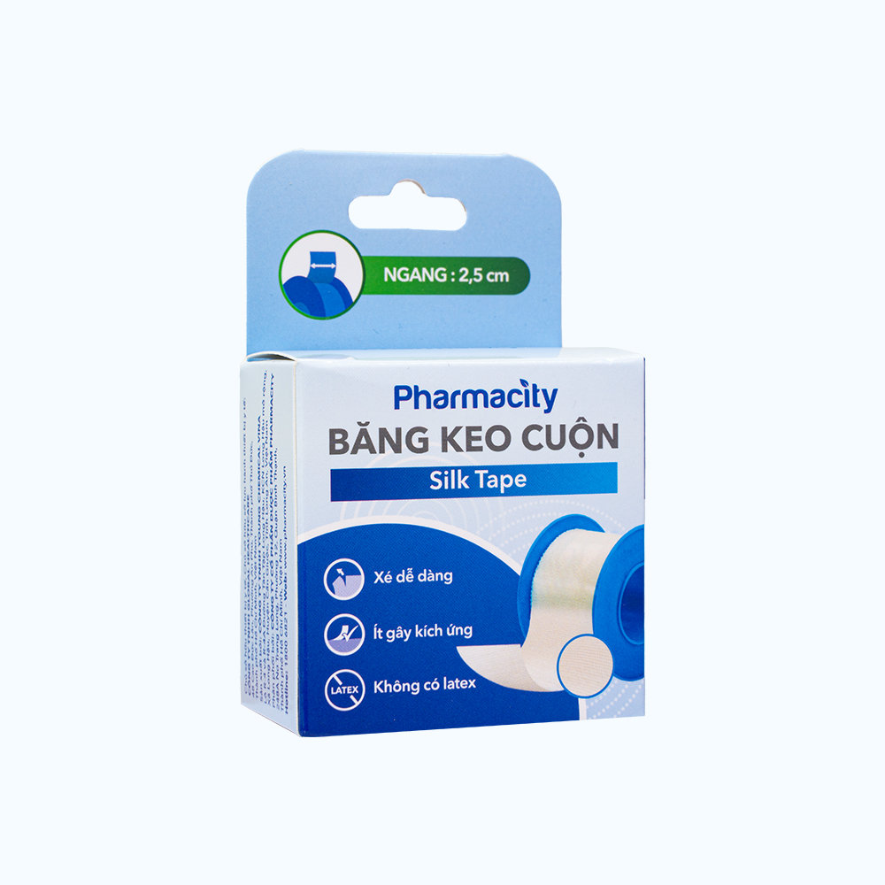Mua tại TiktokThành phần Băng cuộn: Vải lụa Keo: Acrylic Công dụng Loại băng keo lý tưởng cho da nhạy cảm, chất kết dính ít gây kích ứng, dùng để băng các vết thương sau phẫu thuật, cố định ống truyền dẫn, truyền dịch, kim luồn... Hướng dẫn sử dụng Làm sạch và khô da trước khi dán, thay băng dán khi cần. Thông tin sản xuất Bảo quản: Nơi thoáng mát, tránh ánh nắng mặt trời, nhiệt độ từ 1-30 độ C. Quy cách đóng gói: 2.5cm x 5m (1 cuộn/hộp)