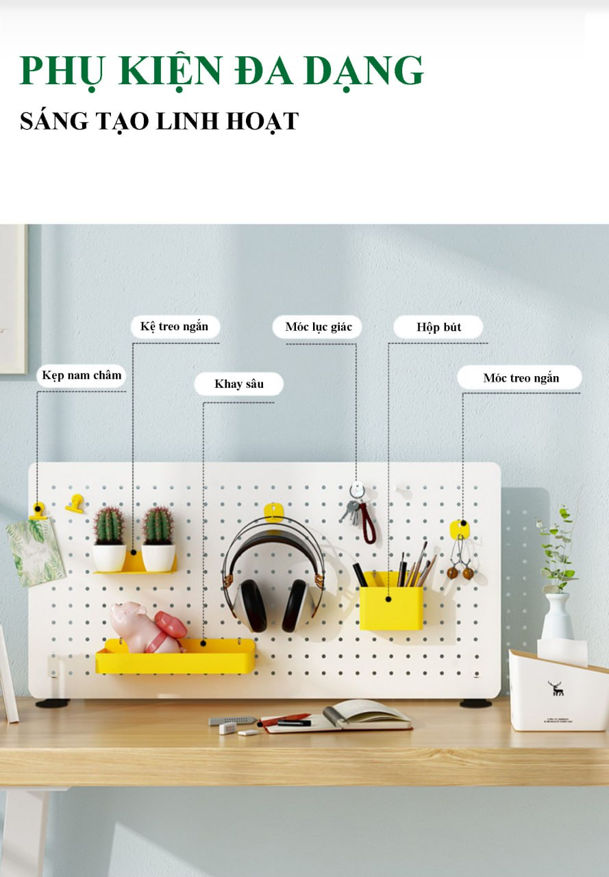 ✨Bảng lỗ Pegboard Dola Home cao cấp dạng chân đứng để bàn để dụng cụ làm việc, tai nghe, mô hình, bàn phím, laptop