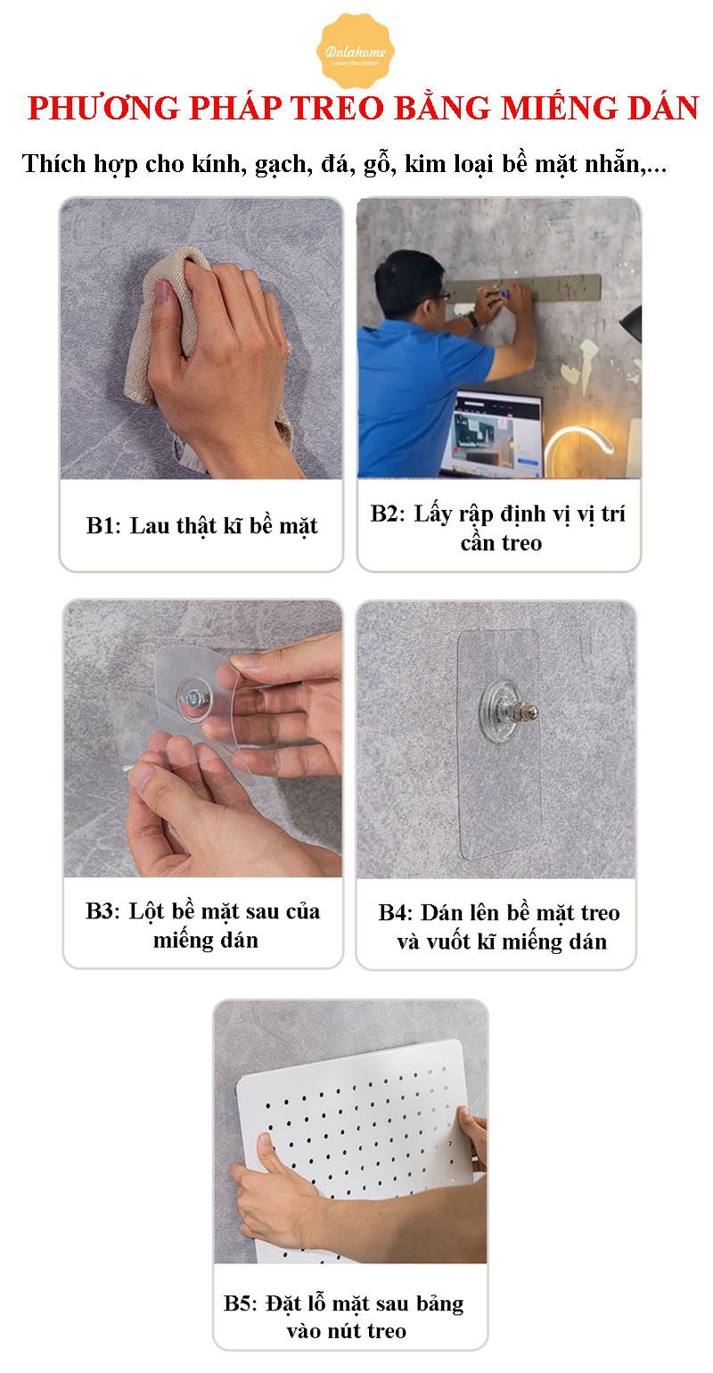 - Xem cách treo bằng miếng dán tại link: https://youtu.be/PPjN3-EmKK8 2/ Cách treo bằng vít + tắc kê: