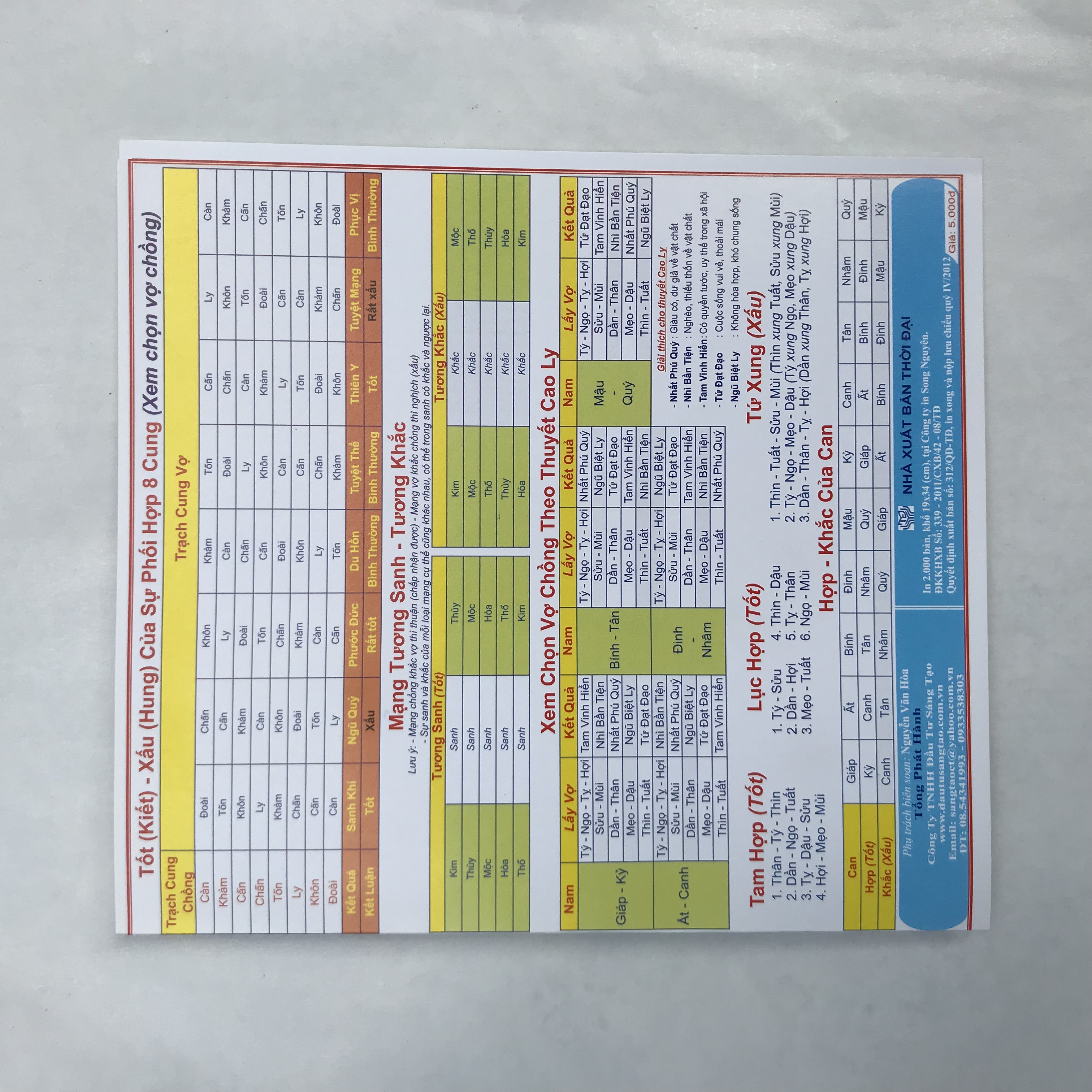 Ấn phẩm tóm lược kiến thức cơ bản nền tảng phối hợp tử vi - phong thủy, được trình này trực quan theo các bảng biểu nhằm giúp người đọc dễ dàng tra cứu các