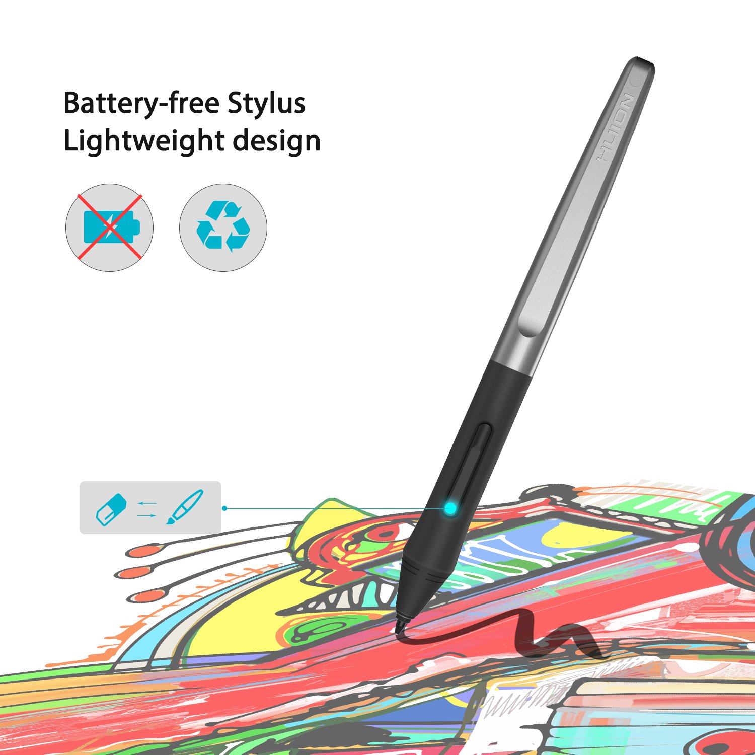 Bảng Vẽ Điện Tử HUION H1060P Hàng Nhập Khẩu 1. Stylus không có pin: Được trang bị bút stylus không có pin PW100 mới nhất của tỷ lệ báo cáo 233PPS, chiều cao nhạy cảm 10mm và độ phân
