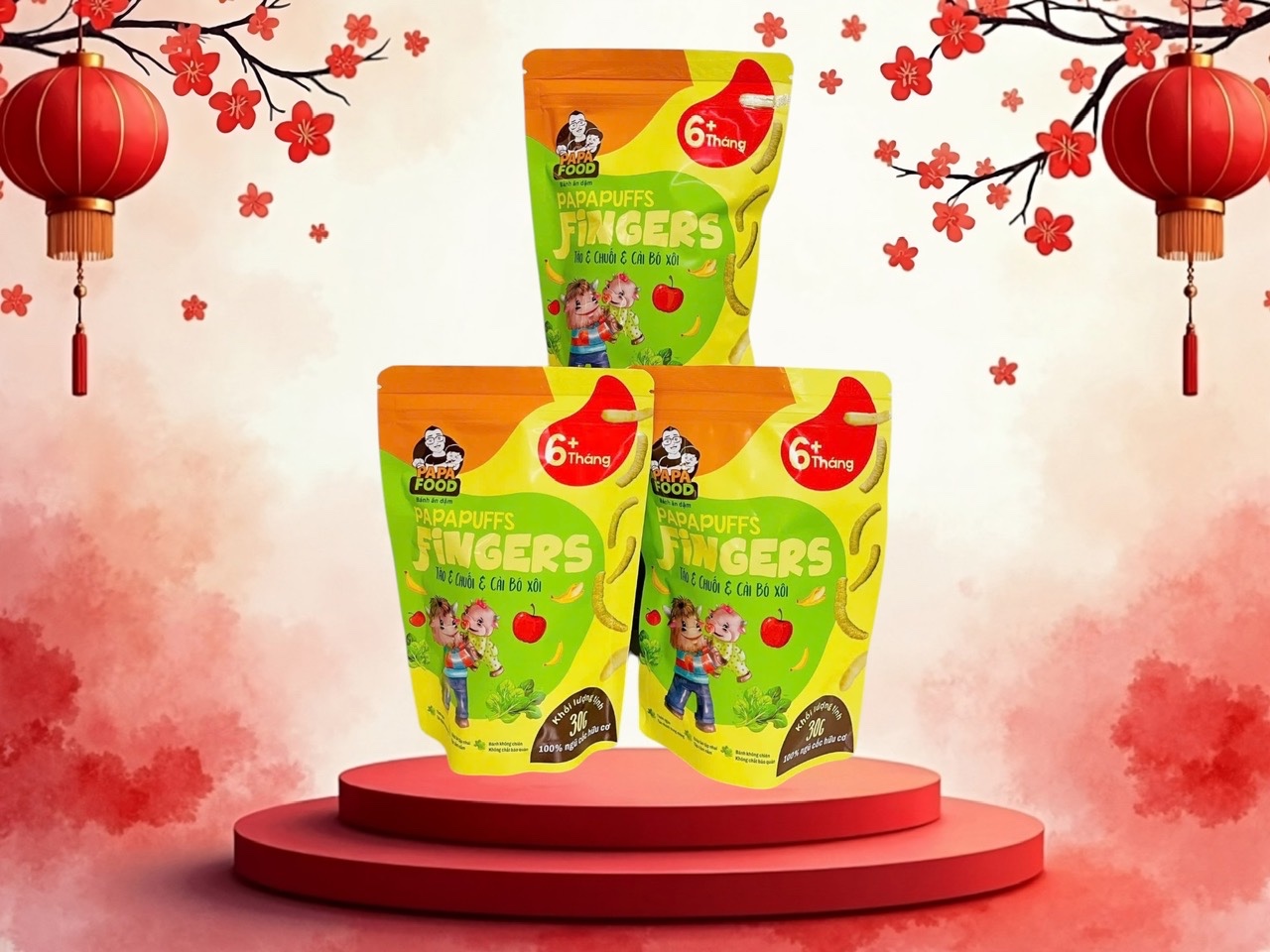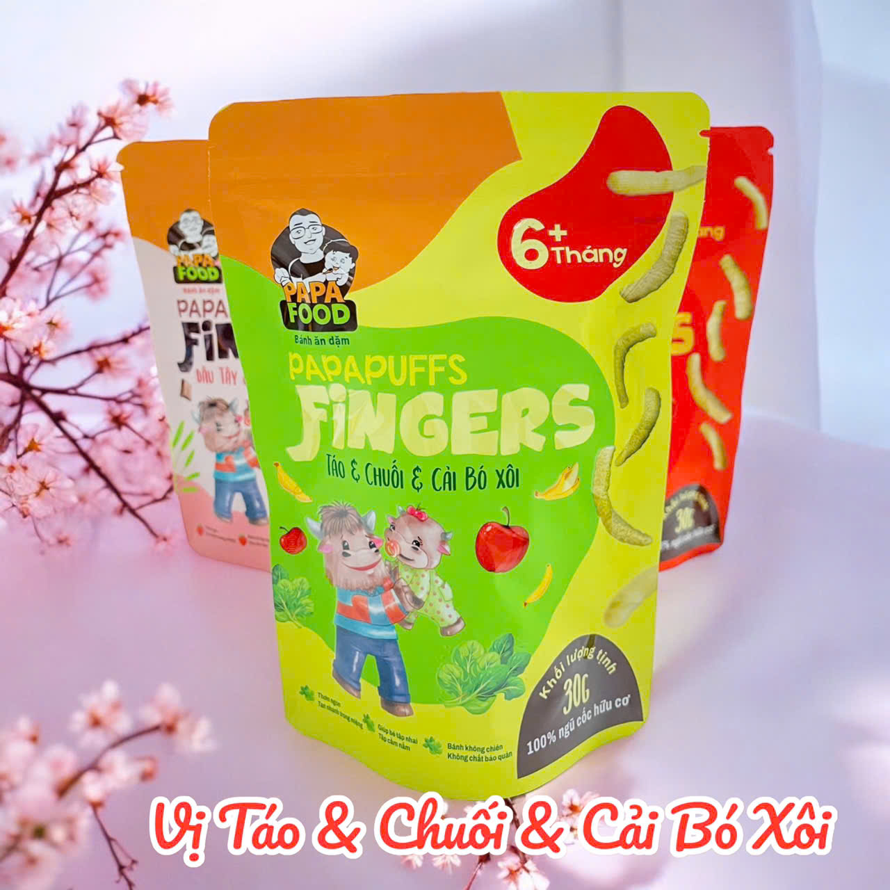 ✨Bánh ăn dặm PAPAFOOD PAPAPUFFS Chuối & Táo & Cải Bó Xôi - 100% Ngũ Cố Hữu Cơ - Gói 30G