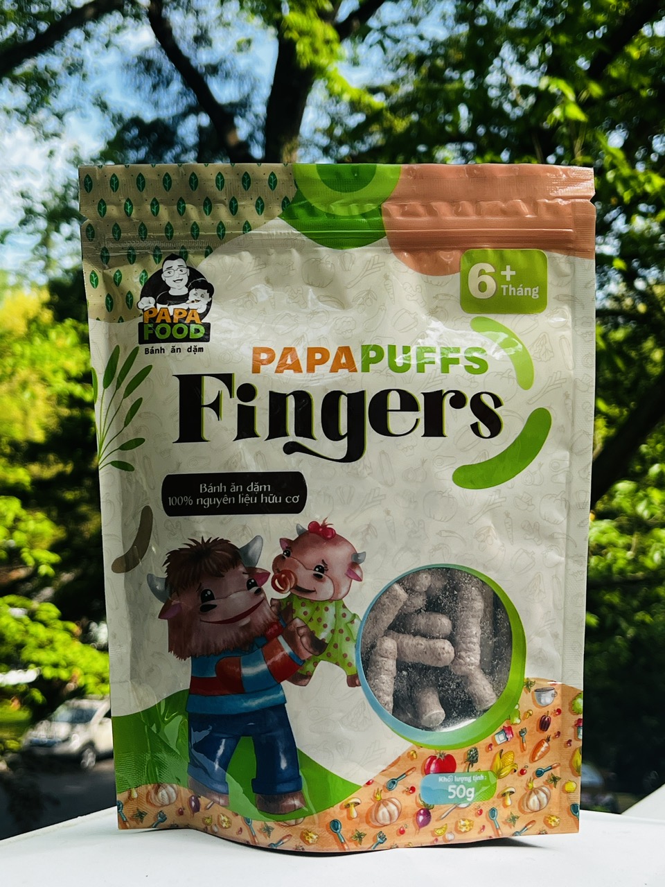 1. Tên sản phẩm: Bánh ăn dặm PAPAPUFFS FINGERS - 100% Nguyên Liệu Hữu cơ 2. Thành phần: Sản phẩm được sản xuất từ 100% Nguyên Liệu Hữu Cơ gồm gạo đen hữu cơ 97%,