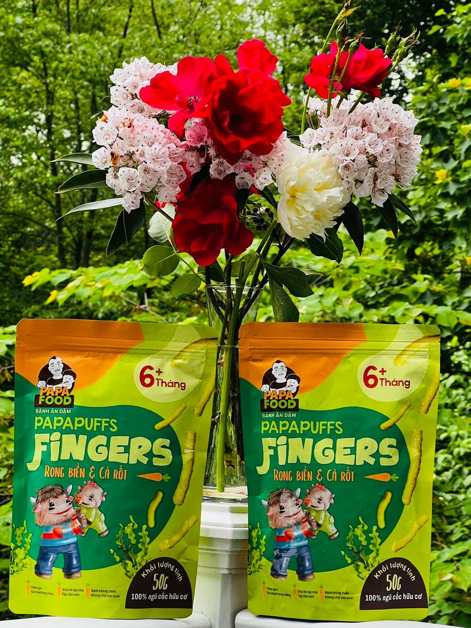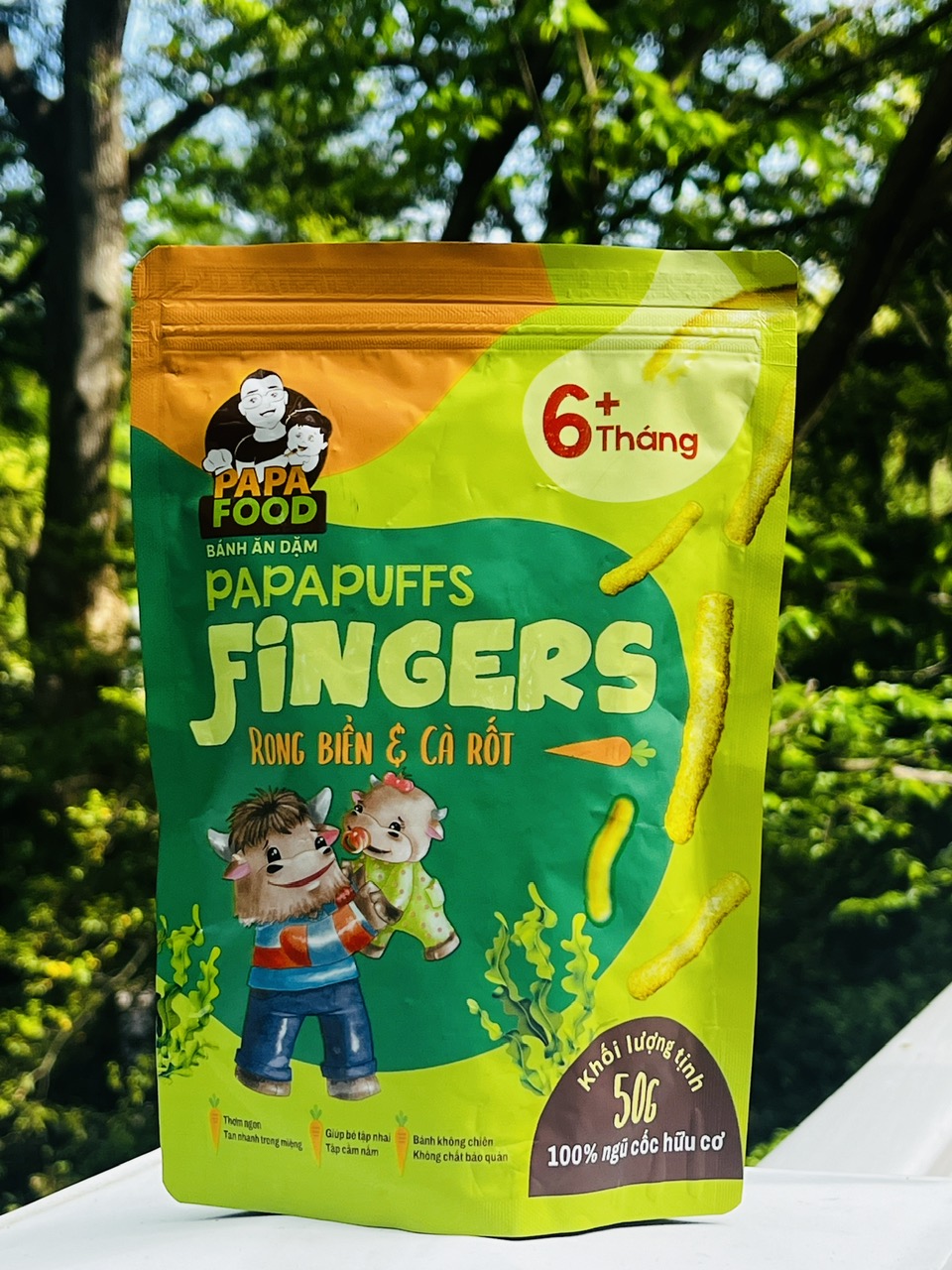 1. Tên sản phẩm: Bánh ăn dặm PAPAPUFFS FINGERS - VỊ RONG BIỂN VÀ CÀ RỐT . 2. Thành phần: Được sản xuất từ 100% Ngũ cốc Hữu Cơ - Gồm gạo lứt hữu cơ,