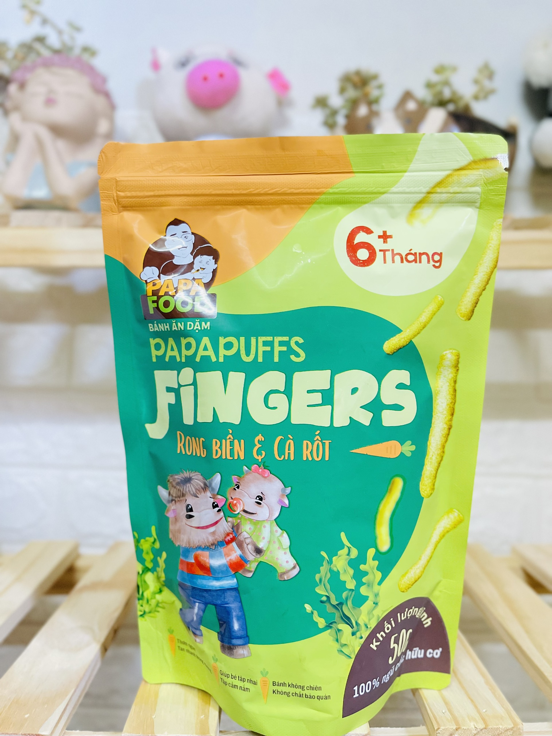 ✨Bánh ăn dặm PAPAPUFFS FINGERS - Vị RONG BIỂN&CÀ RỐT - 100% Ngũ Cốc Hữu Cơ - Gói 50g