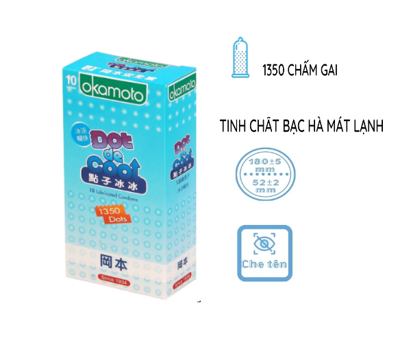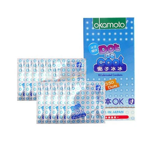 - Okamoto Dot De Cool là dòng sản phẩm điển hình về tính năng " Gai lạnh " của bao cao su , giúp cả hai cùng tận hưởng cảm giác mát lạnh đê mê.