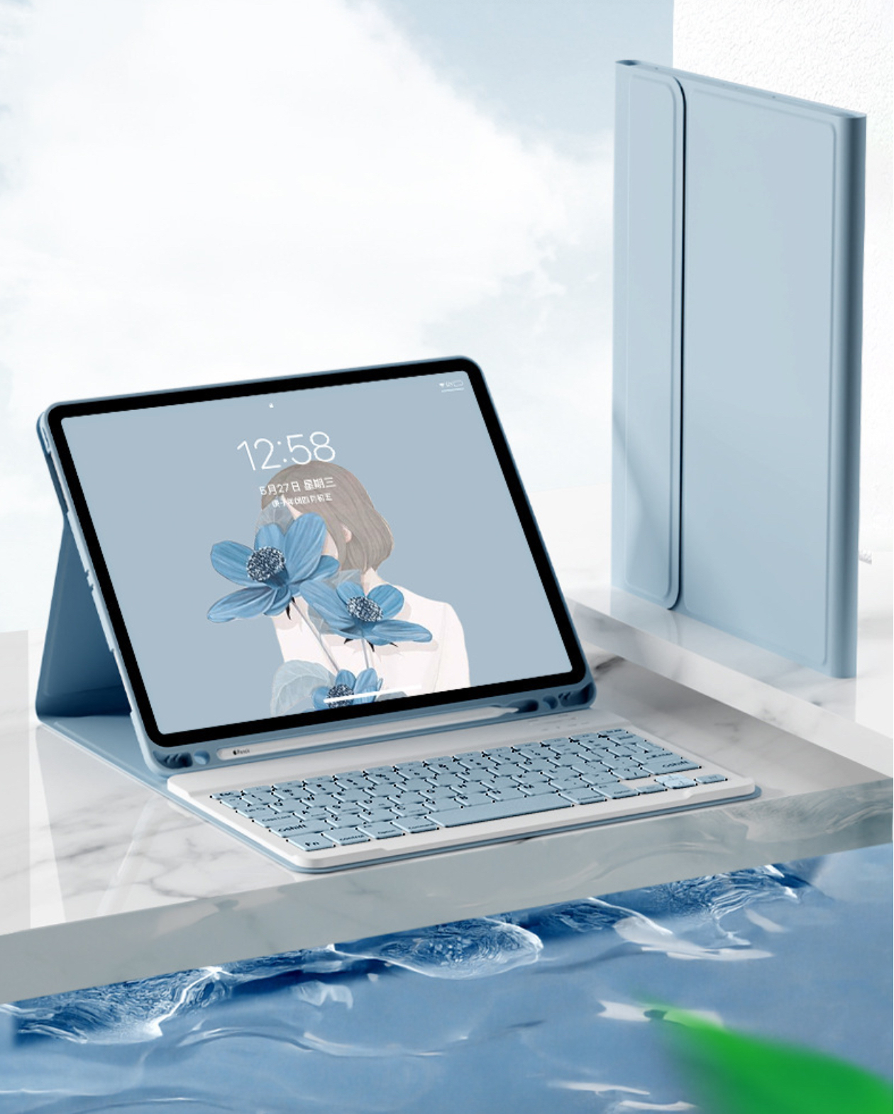 Bao da iPad Smart Keyboard kèm bàn phím Bluetooth. 1: Dành cho iPad. Giải pháp bàn phím Bluetooth 2: Khoảng cách hiệu quả 10 mét 3: Thời gian chờ: 300 giờ 4: Giờ làm việc
