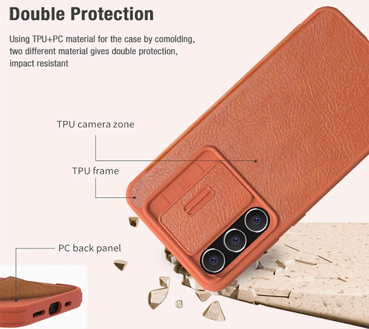 ✨Bao da cho SamSung Galaxy S24 FE chính hãng Nillkin QIN có nắp trượt bảo vệ camera sau - Hàng chính hãng