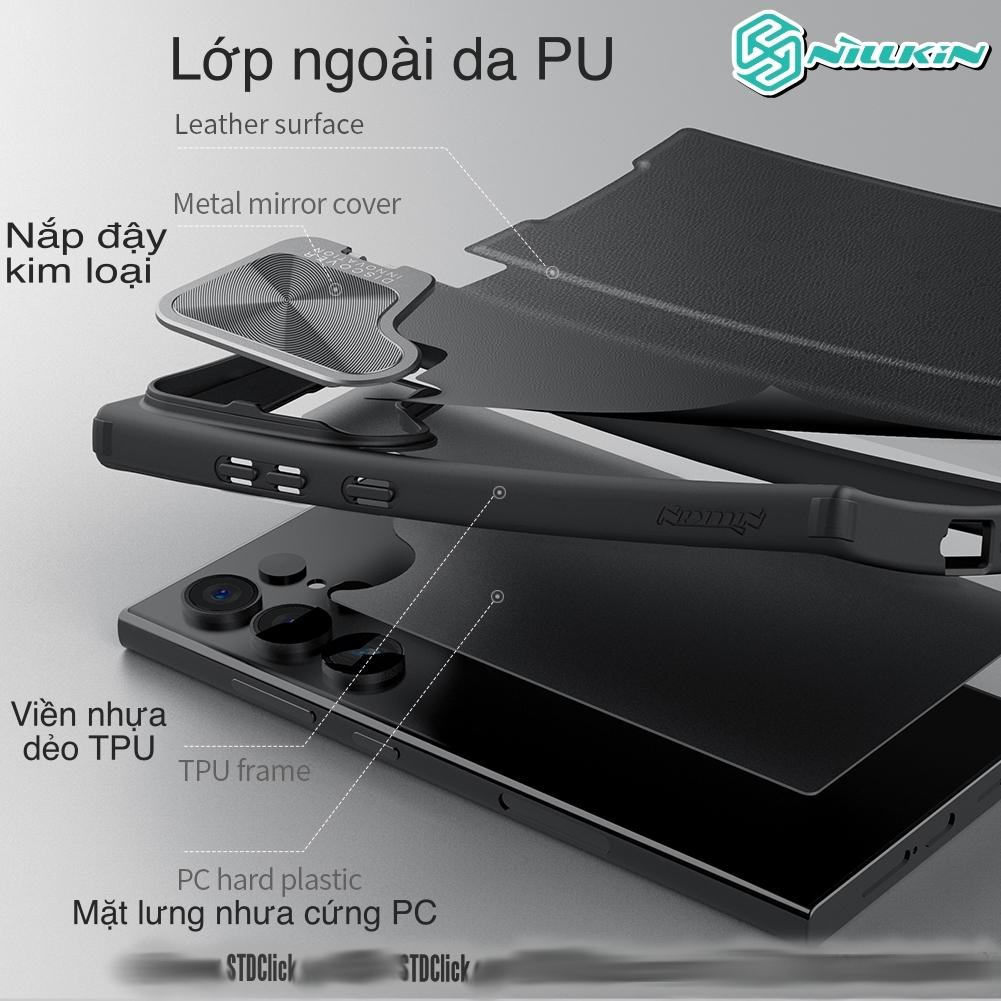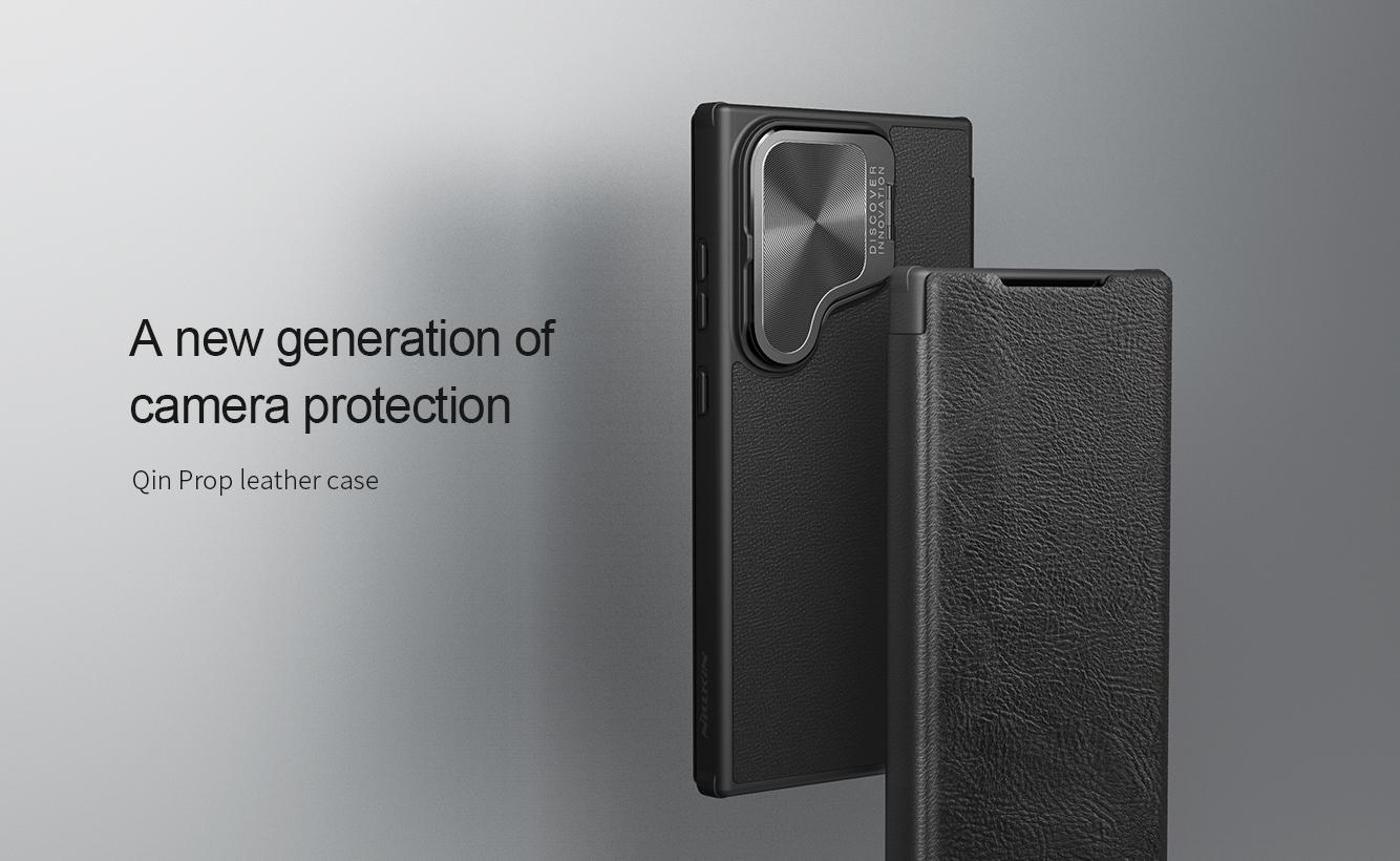 BAO DA SAMSUNG GALAXY S24 ULTRA 5G - S24+ 5G NILLKIN QIN PROP - bảo vệ Camera kiêm giá đỡ - với dòng Nillkin Qin Prop dùng cho Samsung S24 Ultra, S24+, S24