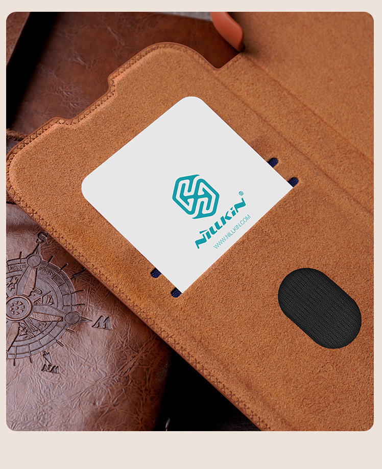 - Bao da Nillkin Qin Pro được làm từ da PU cao cấp, bề mặt mềm mại, chống bám bụi và trầy xước.