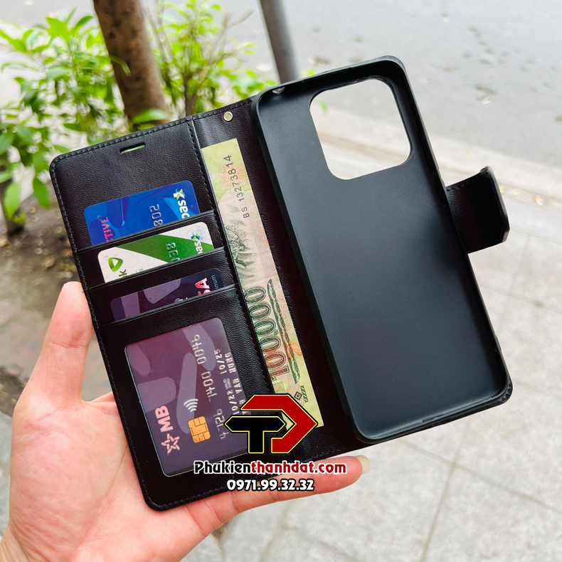 ✨Bao da dạng ví cho Xiaomi Redmi 12C hiệu Hanman có quai cài - Hàng chính hãng