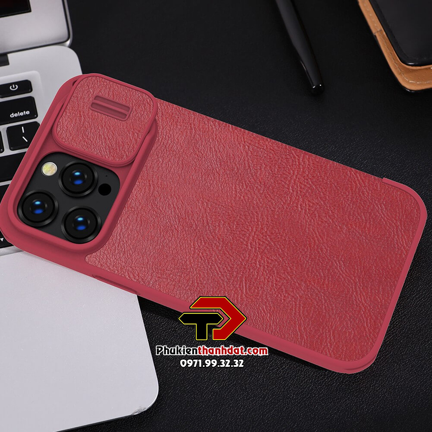 ✨Bao da dành cho iPhone 14 Pro Max hàng chính hãng Nillkin QIN có nắp trượt bảo vệ camera - Hàng chính hãng