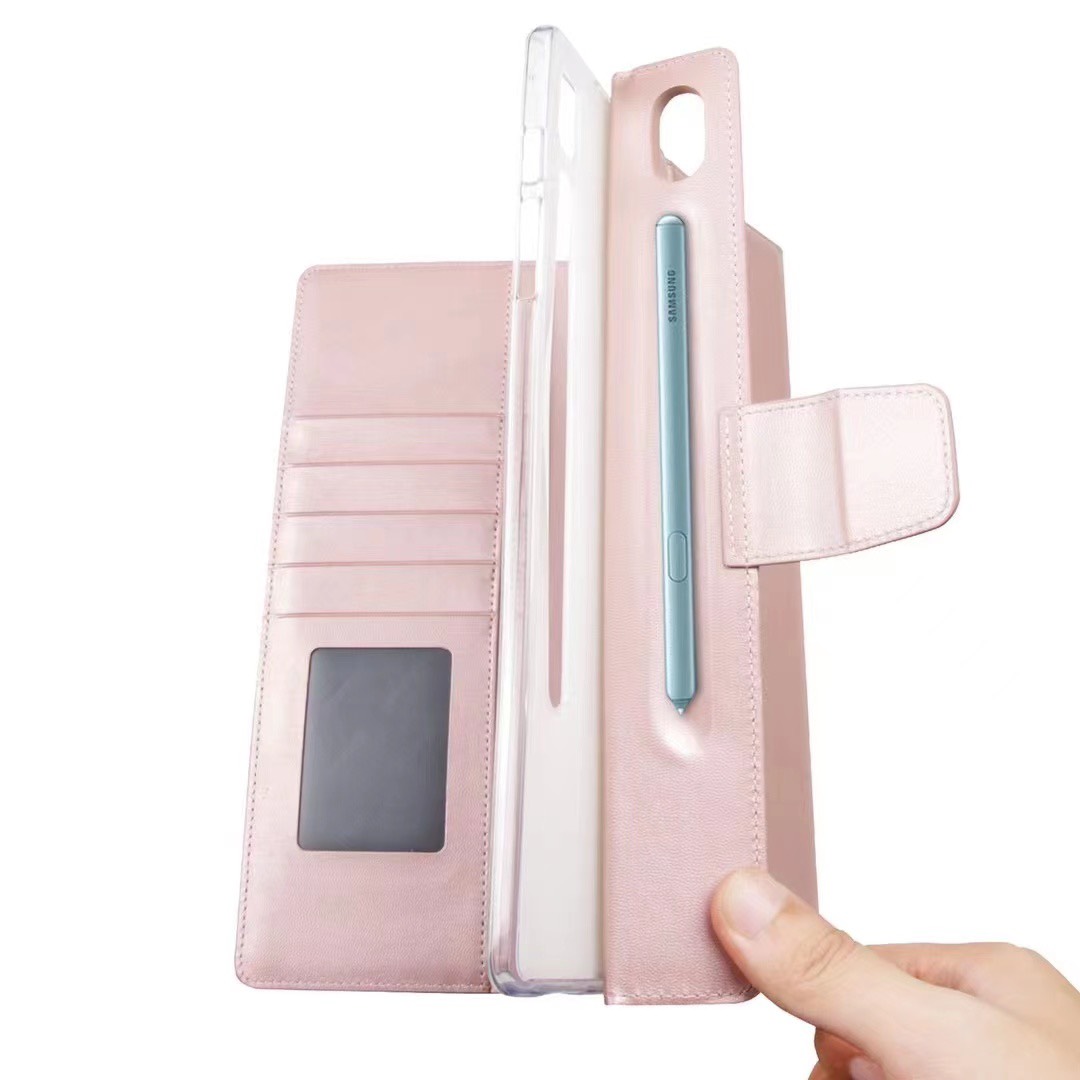 Bao da dạng ví SamSung Galaxy Tab A7 2020 T505, Tab A7 Lite hiệu Hanman có quai cài. Bao da được làm từ chất liệu da cao cấp, bền chắc, rất khó bị trầy,