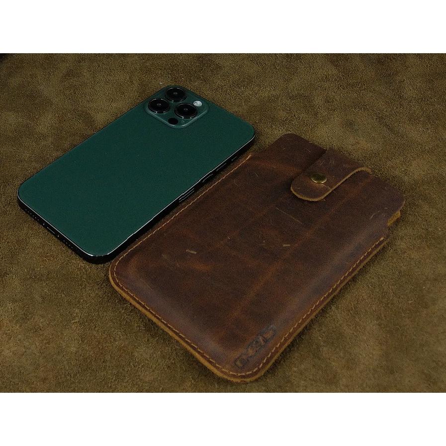✨Bao Da Rút Nút Cài cho Iphone 12 pro max, 13 pro max, 14 pro max.... Da Bò Sáp