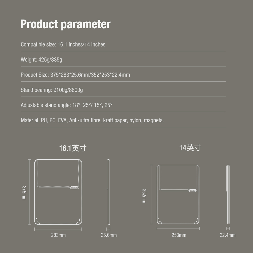Nó không chỉ là một chiếc túi đựng đồ mà còn là giá đỡ laptop và tấm lót chuột. Sử dụng PU ưa thích, có khả năng chống xước và bền. Sử dụng miếng xốp lót flannel bên trong để giảm sốc. Trang bị chân đế từ tính giúp tăng tốc độ tản nhiệt cho laptop. Dán thêm miếng dán chống trơn trượt giúp laptop không bị trượt khi sử dụng.