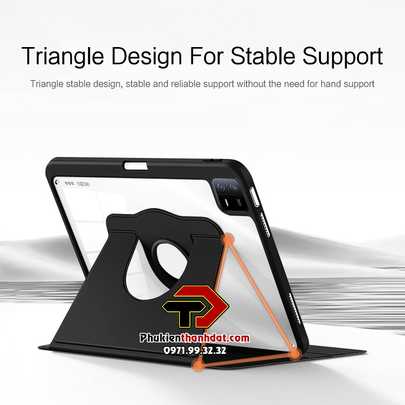 Mua tại TiktokBao da xoay 360 độ chống sốc, có ngăn đựng bút tiện lợi.