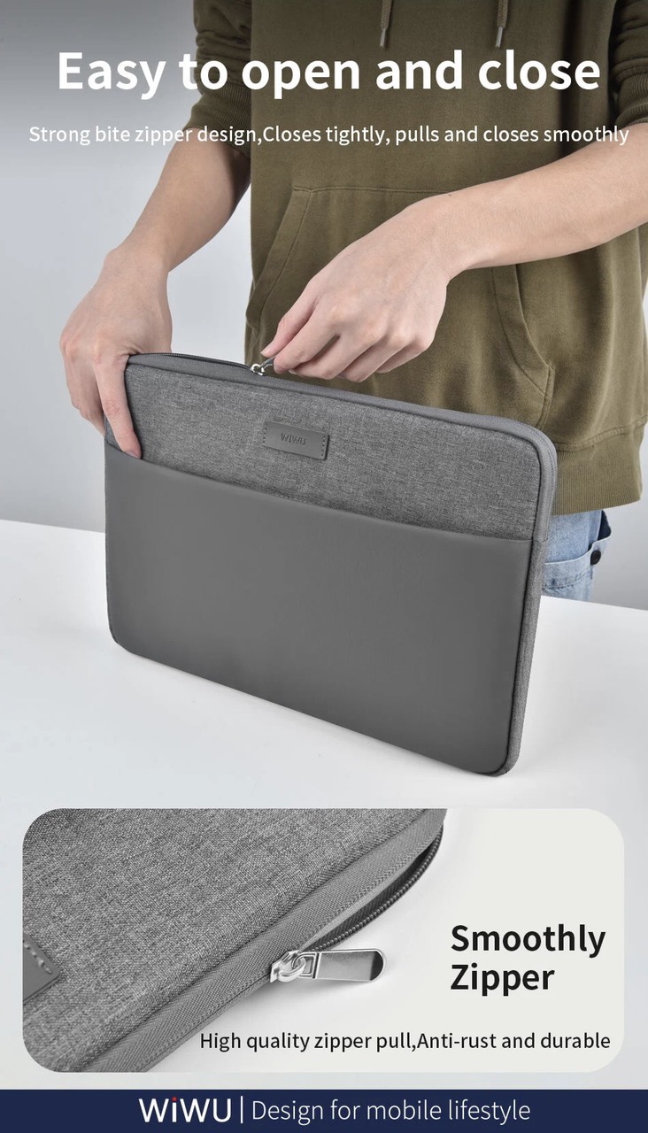 Mua tại TiktokBao đựng máy tính xách tay Wiwu #Minimalist Laptop Sleeve Thương hiệu: #Wiwu Chất liệu: vải Polyester chống thấm nước Màu sắc: đen, xám Kích thước: 14 inch , 15.6 inch Túi được thiết kế đơn giản và nhẹ nhàng, các góc được may và luồn chỉ chính xác, chắc chắn và bền đẹp Ngăn trước túi dành cho các thiết bị kỹ thuật số, dây cáp Ngăn đựng #máy tính được làm bằng lớp lót lông thú Thiết kế khóa kéo chắc chắn, đóng chặt, kéo và đóng êm ái Chống trầy xước và chống mài mòn/ chống tràn và chống bẩn/ bảo vệ chống sốc