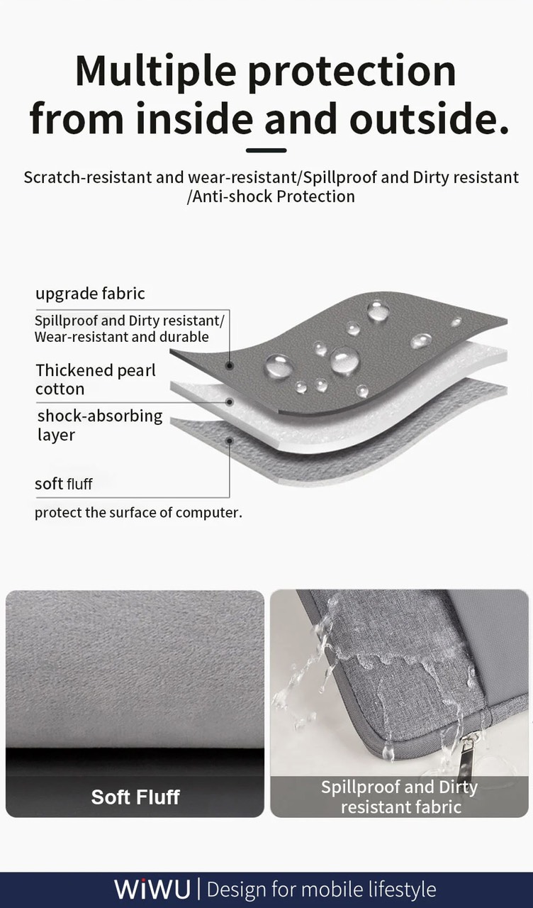 THÔNG TIN CƠ BẢN - Thương hiệu: WiWU - Model: Wi-MLS 14/16 inch - Năm sản xuất: 2024 - Loại túi: Túi đựng Laptop dạng ngang (túi chống sốc) CHI TIẾT SẢN PHẨM - Chất liệu: Vải