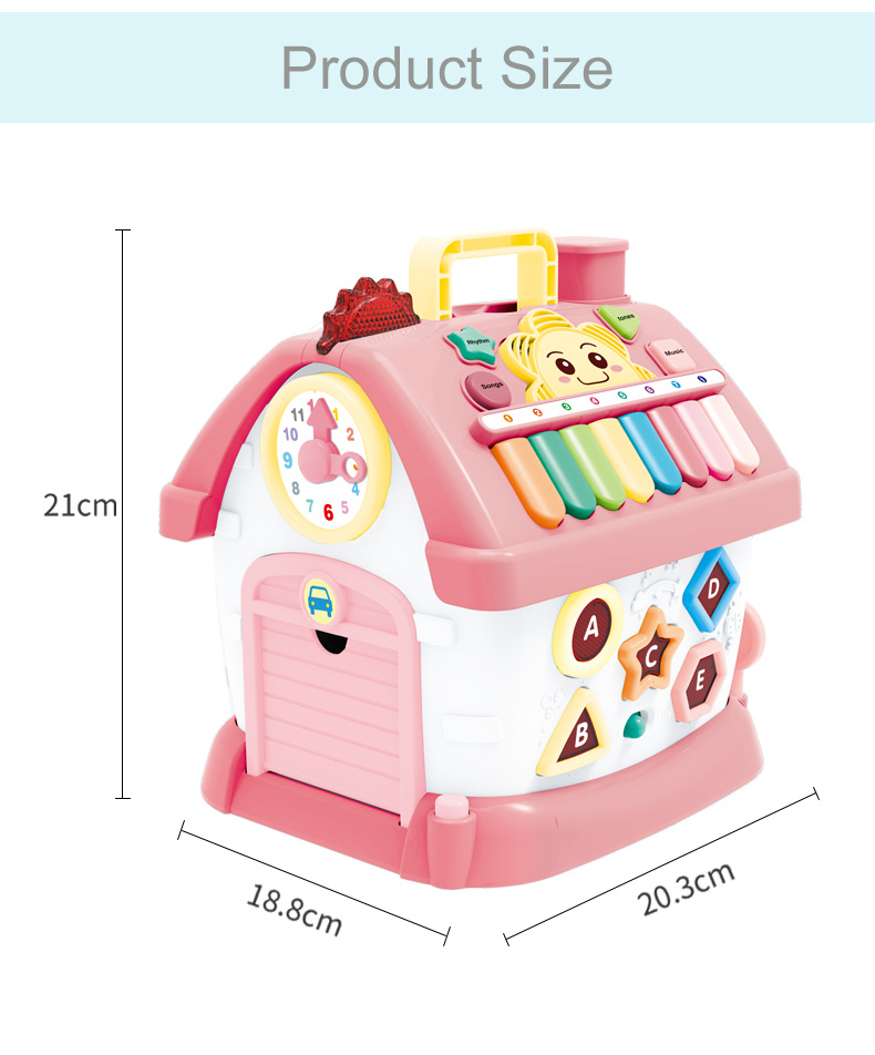Thiết kế hình ngôi nhà đáng yêu, tích hợp các trò chơi phát triển tư duy như lắp ghép, nhận biết hình khối, màu sắc và âm thanh vui nhộn.