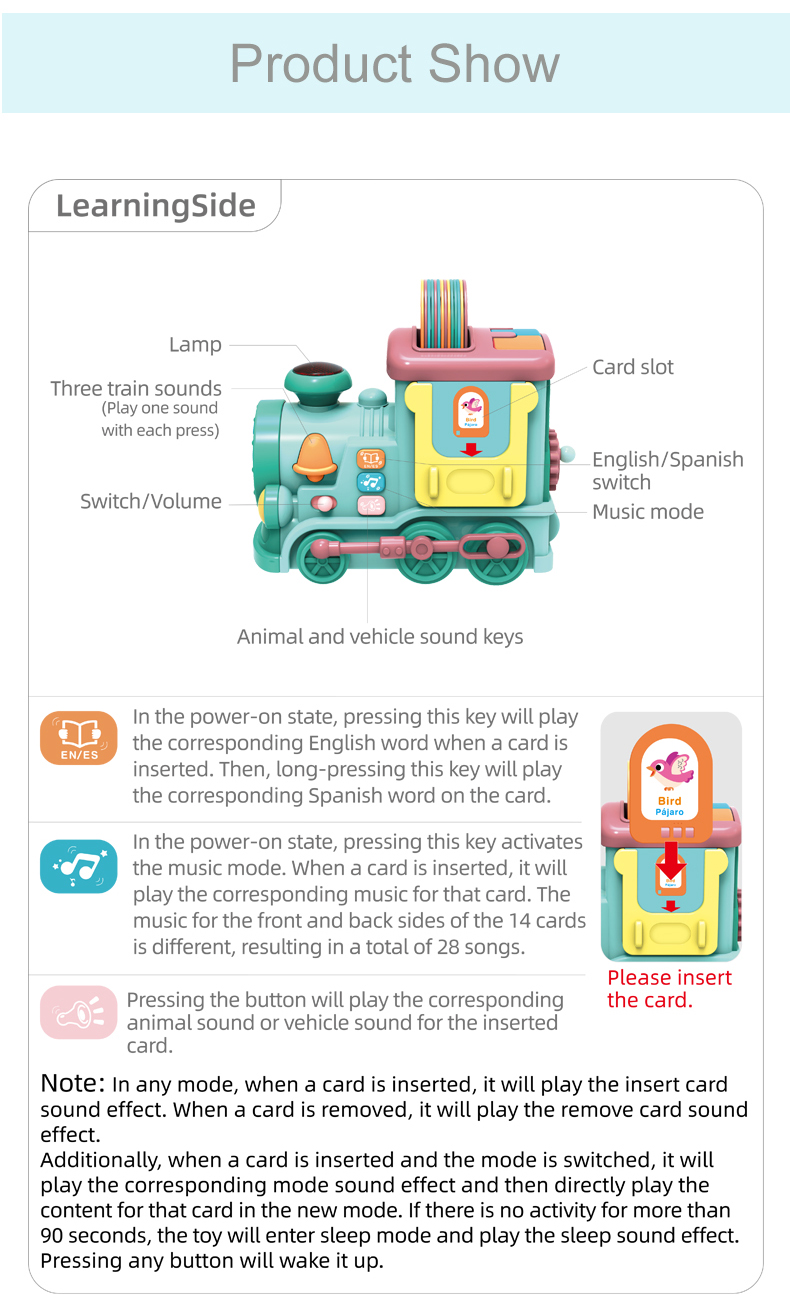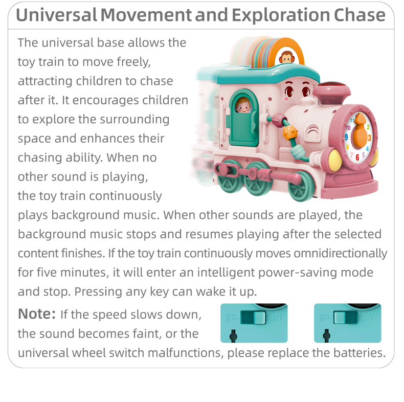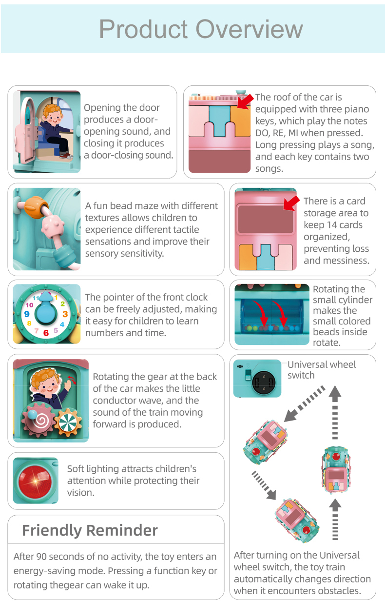 Xe học tập đa năng thông minh: Chạy điện tự động, di chuyển linh hoạt. Phát triển nhận thức âm nhạc kích thích trí tuệ sớm. Song ngữ Anh - Trung giúp bé học ngôn