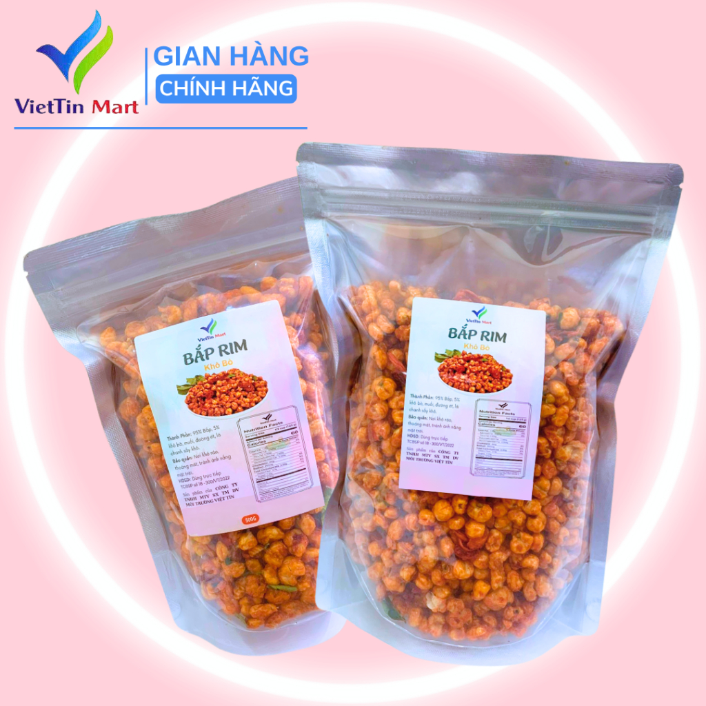 Bắp Rim Khô Bò Viettin Mart 1KG GIỚI THIỆU VỀ VIETTIN MART THÔNG TIN SẢN PHẨM Tên sản phẩm: Bắp Rim Khô Bò Viettin Mart 1KG Thành Phần: ngô nếp - Bắp, khô bò (Myna