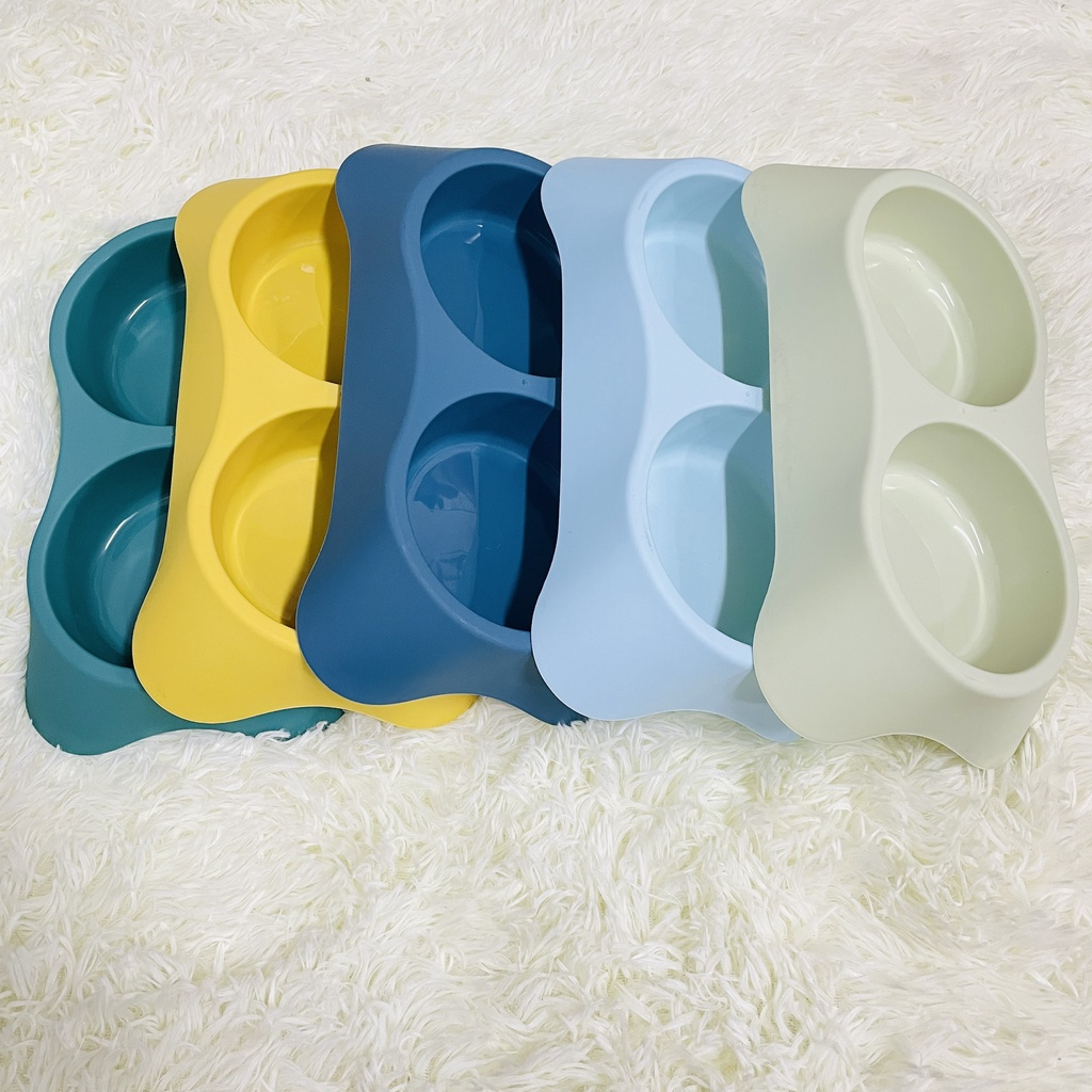 Bát cho mèo, Bát nhựa đôi cao cấp hình xương dành cho thú cưng