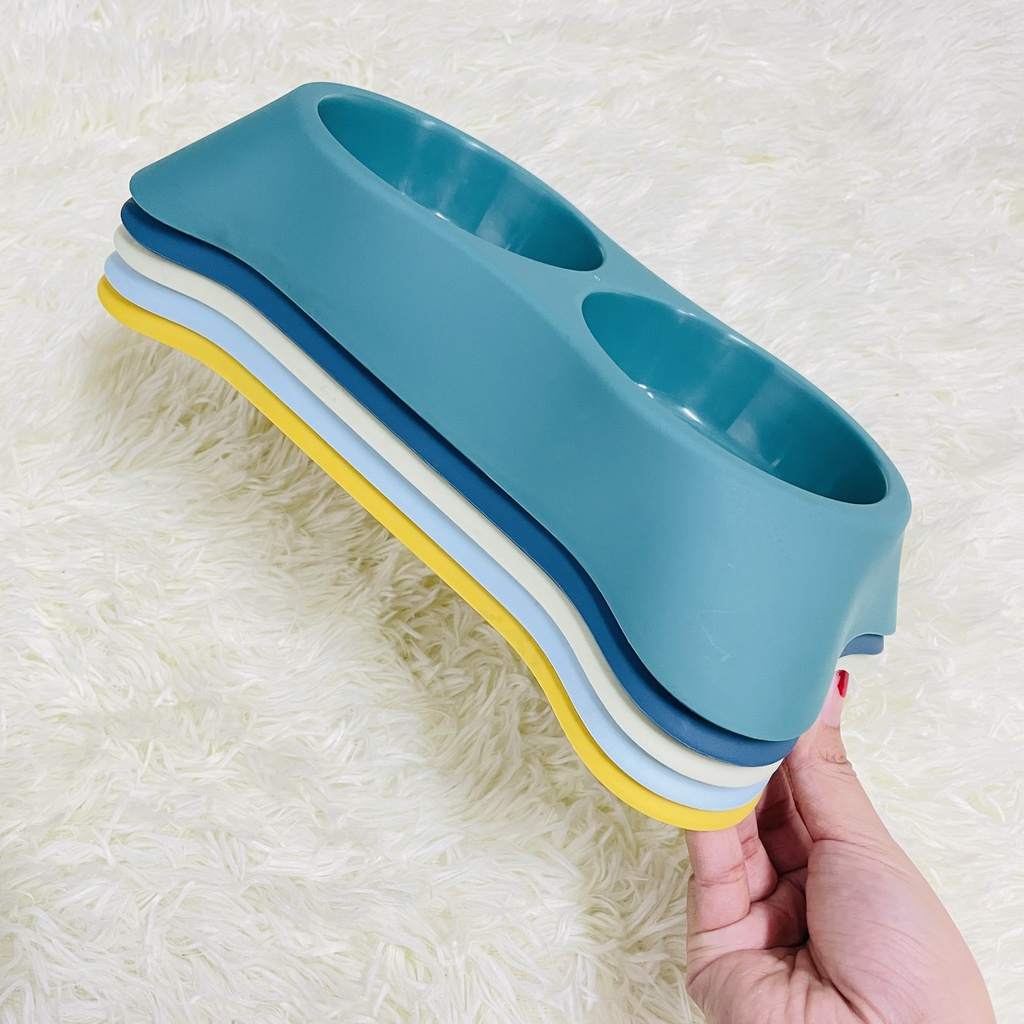 ✨Bát Ăn Đôi Nhựa Cao Cấp Cho Chó Mèo Hình Thang