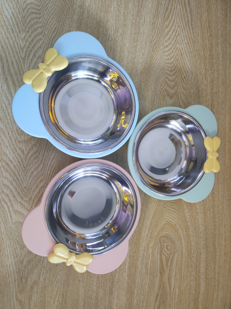 ✨Bát Ăn Đơn Cho Có Mèo Hình Nơ Kèm Chén Inox - YonaPetshop