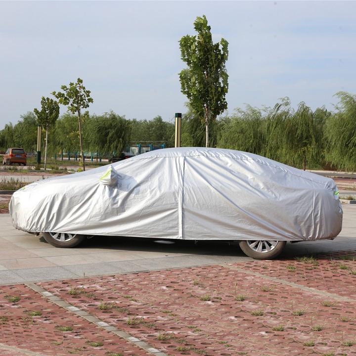 Bạt phủ xe ô tô 7 chỗ 3 lớp tráng nhôm cách nhiệt, chống nóng, chống thấm, chống bụi bẩn - Bạt phủ xe có mặt ngoài là chất liệu vải PEVA tráng nhôm phản