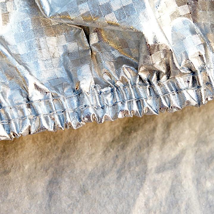Bạt phủ xe ô tô 7 chỗ 3 lớp tráng nhôm cách nhiệt, chống nóng, chống thấm, chống bụi bẩn - Bạt phủ xe có mặt ngoài là chất liệu vải PEVA tráng nhôm phản