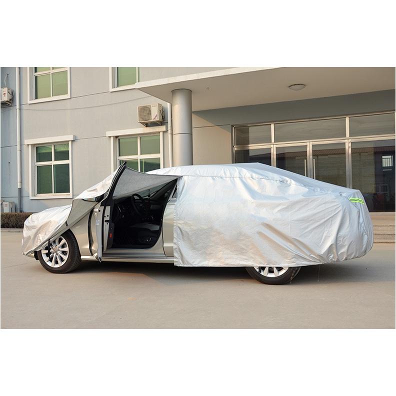 Bạt phủ xe ô tô 7 chỗ 3 lớp tráng nhôm cách nhiệt, chống nóng, chống thấm, chống bụi bẩn - Bạt phủ xe có mặt ngoài là chất liệu vải PEVA tráng nhôm phản